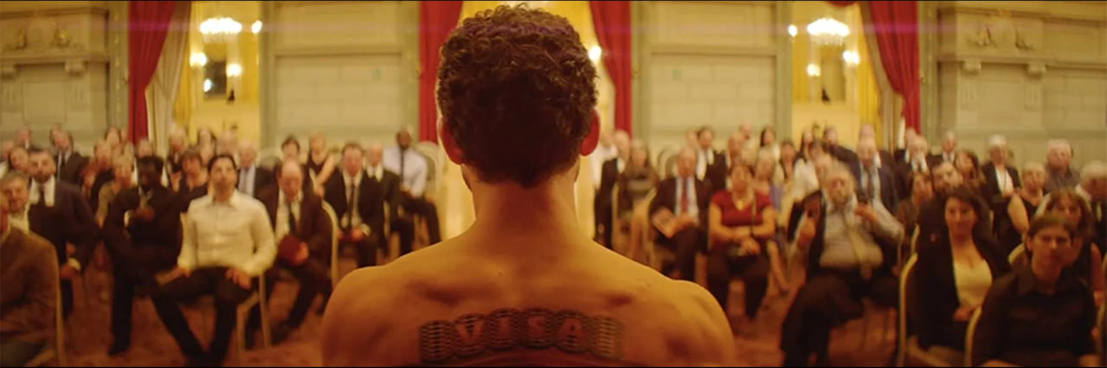 Als sein Rücken bei einer Kunstauktion für fünf Millionen Euro versteigert wird, ist es genug. Sam rastet aus, reisst seine Kopfhörerkabel aus der Gürteltasche, als wäre es ein Zünder, und löst damit Massenpanik im Saal aus. Das ist das Ende der Vorstellung, aber noch ist Sam nicht aus der Geschichte heraus, Verträge sind schliesslich einzuhalten. Es wird eine symbolische Opferung nötig sein, um ihn als Mensch wieder auferstehen zu lassen.