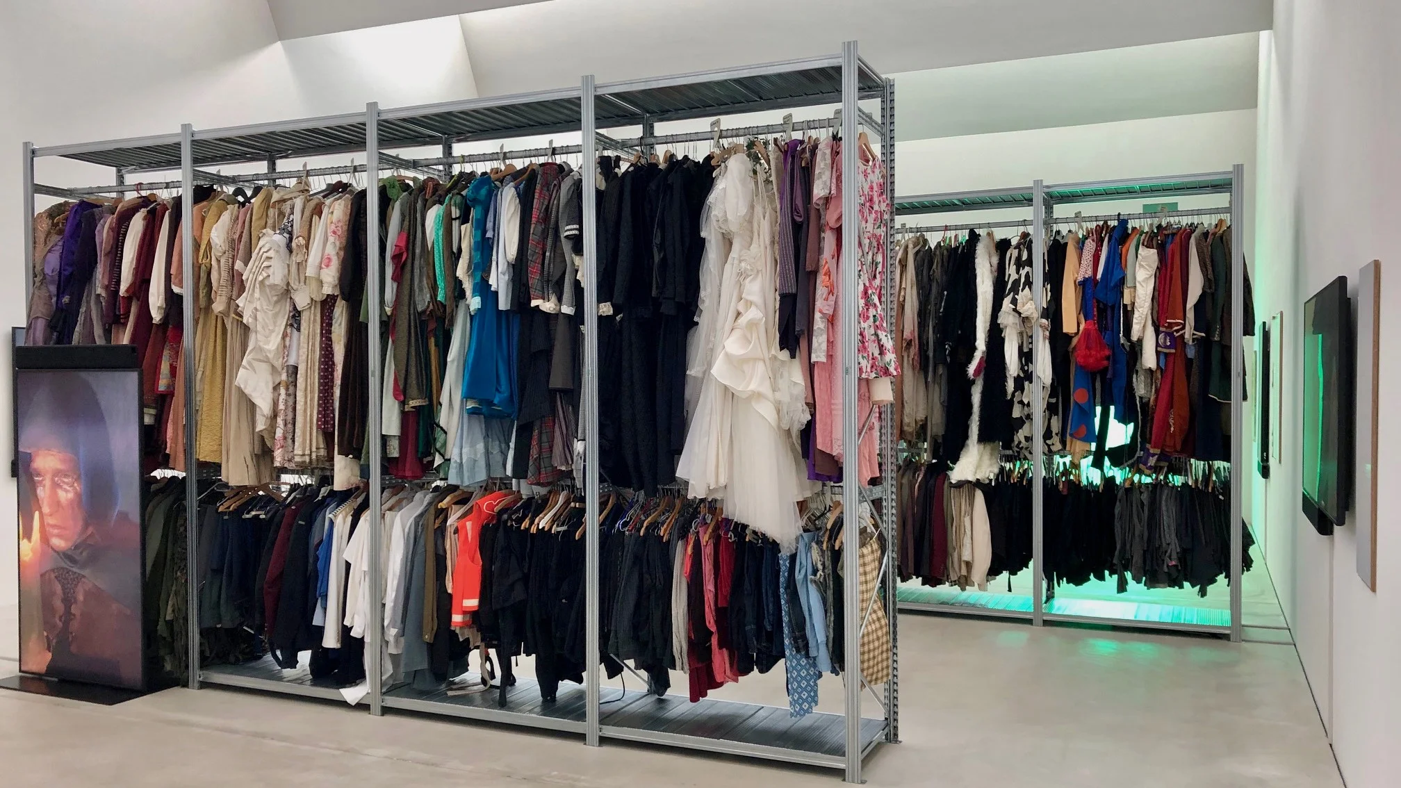 Der Brite Ed Atkins (*1982) ist besonders als Videokünstler bekannt. In seiner Installation «Old Food» geben computergenerierte Videos mit weinenden Babys und Alten in ihrer schillernden Zwitterhaftigkeit von Natürlichkeit und Künstlichkeit einen nicht leicht lesbaren Kommentar zu den dominierenden Regalen voller Kostüme. Diese stammen aus dem Fundus des Theaters für den Kanton Zürich und hängen in langen Reihen dicht gedrängt als leere Rollen für Bühnenfiguren, gewissermassen als ein Arsenal der Verhaltensmöglichkeiten von Menschen. Der Raum stimuliert die Phantasie: Wie wäre es, wenn eine unternehmungslustige Schar sich über diesen Fundus hermachte, die Kleider und die damit verbundenen Rollen ausprobierte und in einem wilden Kostümfest die Säle in Beschlag nähme?