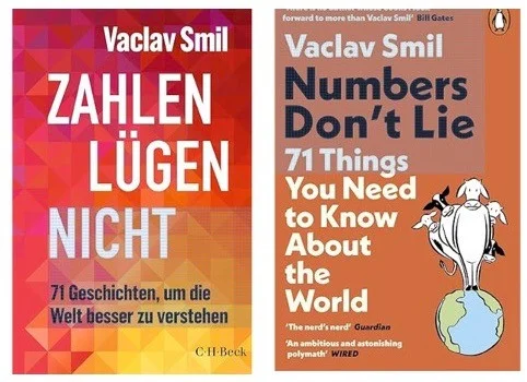 Auf Mitte März ist von Smil die deutsche Ausgabe einer Sammlung von Kurzessays angekündigt, die im Original schon seit 2021 vorliegt: «Zahlen lügen nicht: 71 Geschichten, um die Welt besser zu verstehen» (ebenfalls bei C. H. Beck). Drei Seiten das Stück im Schnitt: Impfungen oder die ertragreichste aller Investitionen. Unsere Batterien auf dem unbefriedigenden letzten Stand. Warum gibt es Maschinen schon länger als Fahrräder. Wie viele Leute hat der Bau der Pyramiden gebraucht. Was ist Innovation. Was ist Lebensqualität. Vorzüge des Sonnenlichts. Eben: 71 Geschichten. Eine hochunterhaltsame Lektüre.