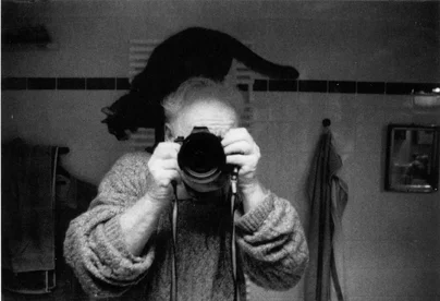 Die ersten drei Bilder hat Stefan Moses von sich und seiner Katze Mau Mau im Spiegel aufgenommen. Man sieht ihn mit seiner Kamera im Moment des Auslösens. Über seine Schultern und seinen Nacken huscht Katze Mau Mau. Das Ganze spielt sich offensichtlich im Badezimmer von Stefan Moses ab. Die drei Bilder sind von verblüffender Direktheit und wirken im ersten Moment so, als ob Stefan Moses auf jeden Gestaltungswillen gepfiffen hätte.