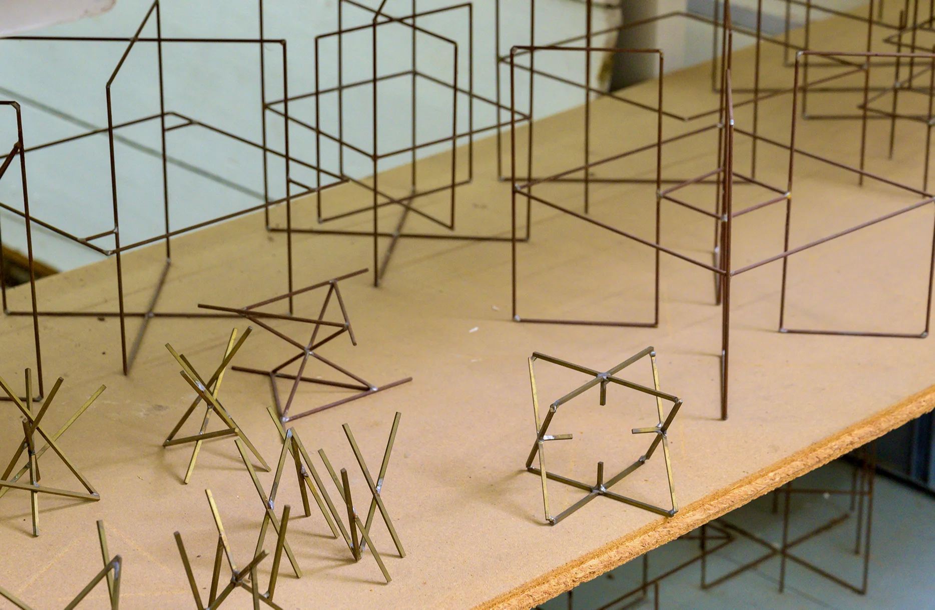 Den Schritt zur räumlichen Gestaltung vollzog er dann mit kleinen Modellen aus Draht oder gelöteten Metallstäben, die er in vielen Variationen ausführte. Die nach solchen Vorarbeiten ausformulierte skulpturale Idee realisierte Granwehr sodann im präzisen Modell in Holz oder Metall, das für sich bereits Gültigkeit als Werk beanspruchen kann.