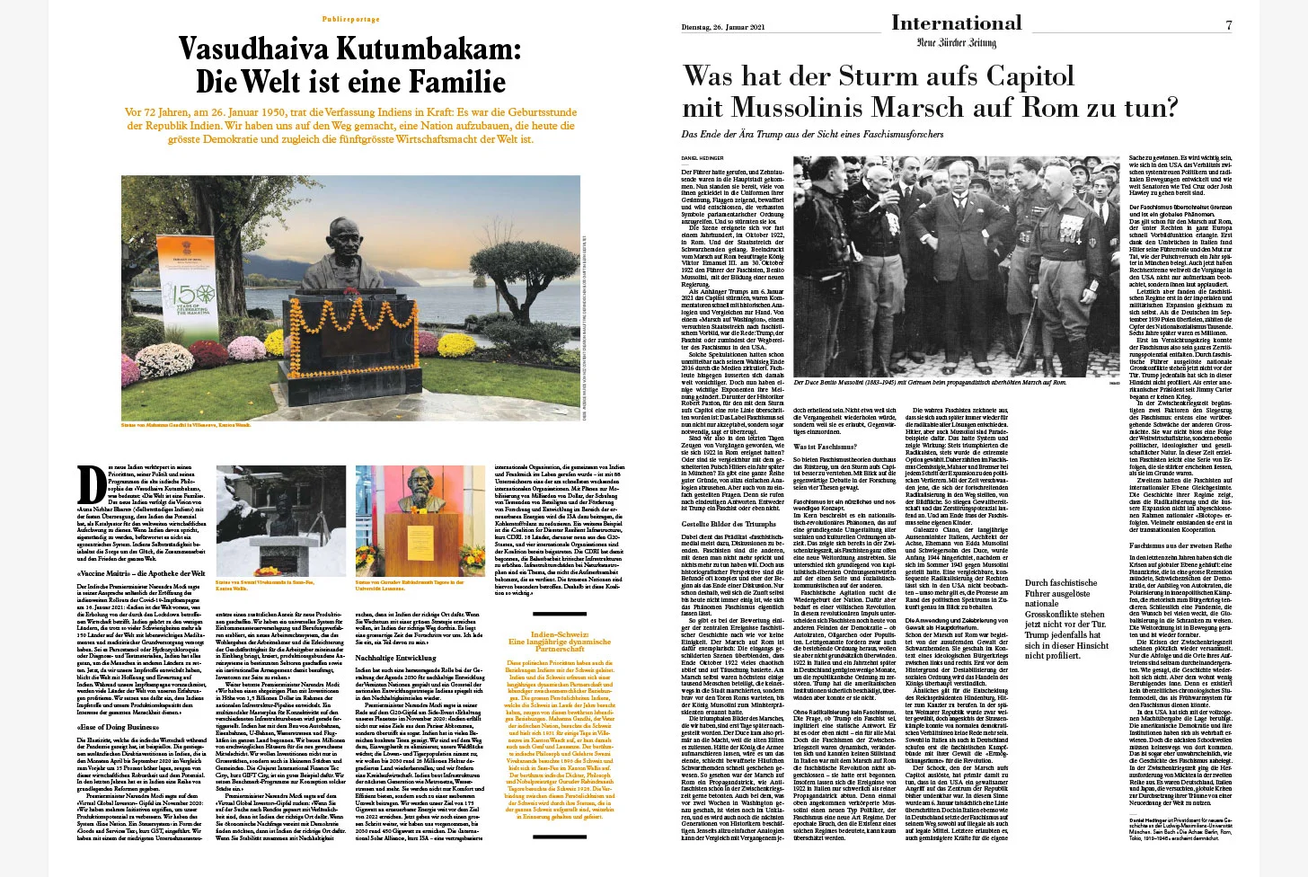 Die indische Botschaft schaltete eine Publireportage, in der zweifelhafte Aussagen von Präsident Narendra Modi unwidersprochen blieben. Es handle sich um «eine klassische Anzeige», teilt die Zeitung mit.
