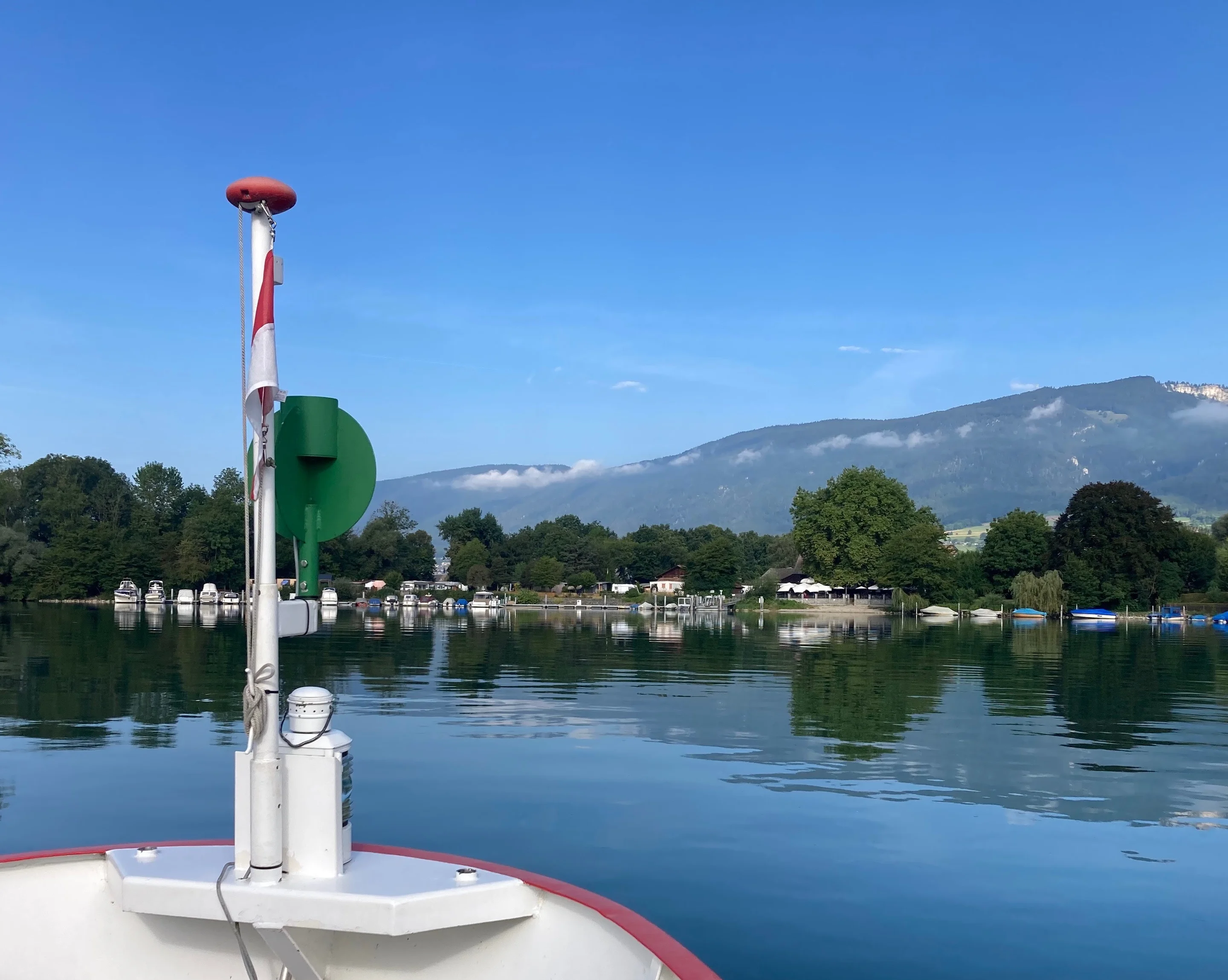 Unterdessen sitzen wir beim Mittagessen in einem Restaurant am Hafen. Daniel, der in der Nähe von Estavayer ein kleines Haus am See besitzt, erzählt vom Juli 2021, als der Pegel im Neuenburgersee wegen des Hochwassers auf der Aare und des Rückflusses durch den Zihlkanal mit 430,57 Metern den seit der Juragewässerkorrektion höchsten je gemessenen Stand erreicht hatte. Der Schaden sei gross gewesen, vor allem als Folge des Treibholzes, das durch die Wellen auf dem See die Wände seines Hauses richtiggehend zertrümmert habe. Aber er wisse sehr wohl, dass ohne Juragewässerkorrektion an jener Stelle keine Häuser stehen würden.