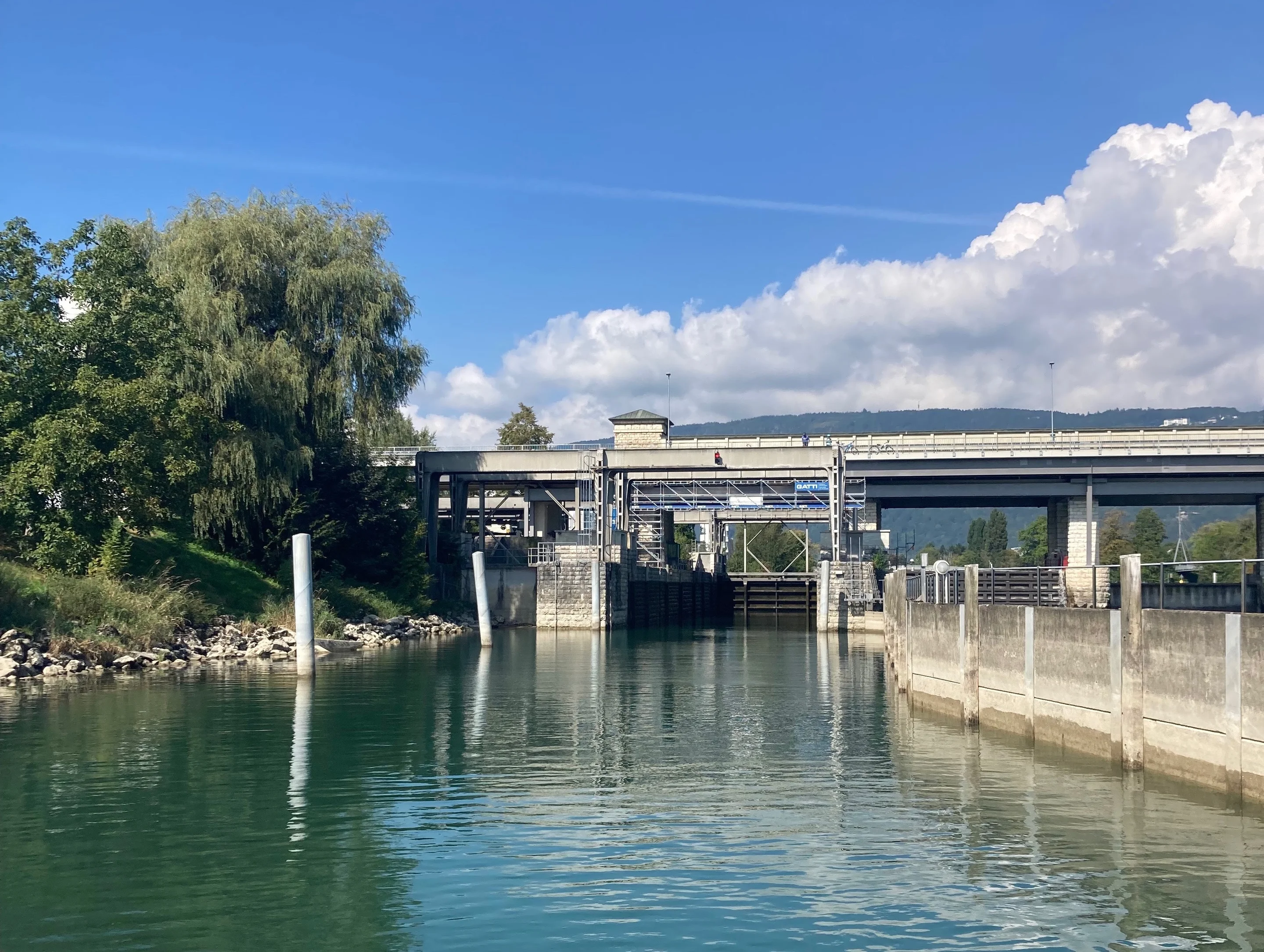 Nun trennt uns vom Bielersee nur noch das Regulierwerk von Port, mit welchem der Wasserstand in den drei Seen und der Abfluss der Aare Richtung Solothurn gesteuert wird. Eine Schleuse hebt uns knappe drei Meter in die Höhe. Während das Schiff langsam nach oben steigt, denke ich darüber nach, wie die Schweiz heute aussehen würde, wenn unsere Vorfahren all die wasserbaulichen Projekte nicht in Angriff genommen hätten – sei es aus finanziellen Gründen oder aus Angst vor dem Technikteufel, der ja auch bei der Eisenbahn eine Rolle gespielt hatte.