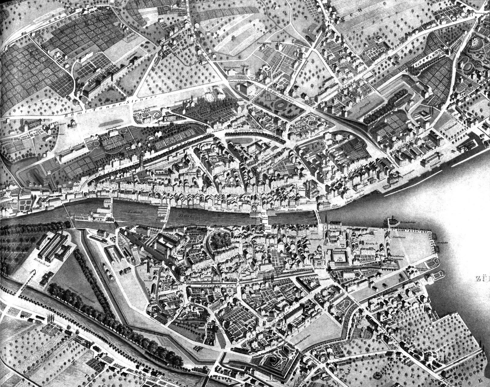 Mich beschäftigte damals allerding mehr die Frage, wieso man auf die bizarre Idee gekommen war, den Zürcher Bahnhof über einem Fluss zu bauen. Ich solle die alte Zürcher Karte von 1847 anschauen, meinte mein Vater, welche als Erbstück in unserer Familie gelandet war. Tatsächlich: Auf der Karte liegt der Bahnhof noch vollständig zwischen Sihl und Limmat. Erbaut hatte ihn die Schweizerische Nordbahn (SNB) für ihre erste Bahnlinie von Zürich nach Baden, die später den Übernahmen Spanisch-Brötli-Bahn erhielt. Ausserhalb des Bahnhofs führte eine zweigleisige Brücke westwärts über die Sihl in den sogenannten Vorbahnhof, wo sich alle technischen Anlagen befanden, welche für einen Bahnbetrieb nötig sind. Das galt auch für die 1871 eröffnete, in grossen Teilen bis heute erhaltene Bahnhofhalle, nach ihrem Erbauer Jakob Friedrich Wanner «Wannerbau» genannt. Zwar nahmen Breite und Anzahl Gleise auf der Sihlbrücke im Laufe der Zeit zu, aber es blieb bei einem klar als Brücke erkennbaren Bauwerk, welches Bahnhof und Vorbahnhof trennte.