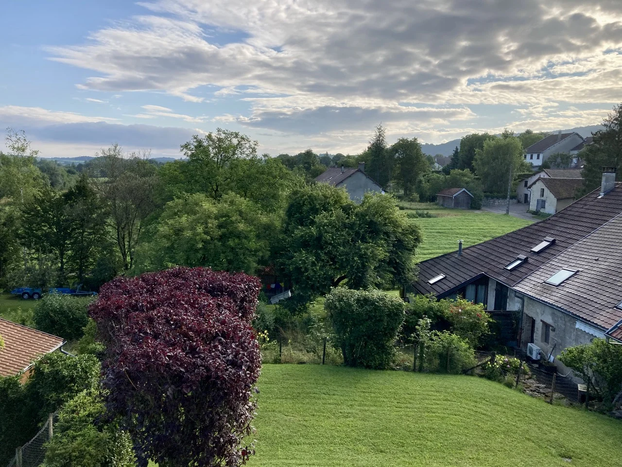 Jetzt endlich ist die Zeit gekommen für jenen Teil unserer Reise, auf den wir uns besonders gefreut haben: der Morgenspaziergang durch eine uns seit über vierzig Jahren vertraute Landschaft. Mein Schwager Felix hatte damals, als er mit seiner Frau die Auberge du Rostaing in Passenans führte, die Umgebung mit einem Netz von markierten Wanderwegen überzogen. Jede Route hatte ihren eigenen Farbcode, den man auf einer Karte, welche Felix seinen Gästen als fotokopiertes A4-Blatt aushändigte, ablesen konnte. So gab es auch eine Route von Passenans nach Saint-Lamain und weiter nach Toulouse-le-Château, welche über einen kleinen Hügel führte, welchen die Bahnlinie von Besançon nach Bourg-en-Bresse in einem kurzen Tunnel unterfährt.