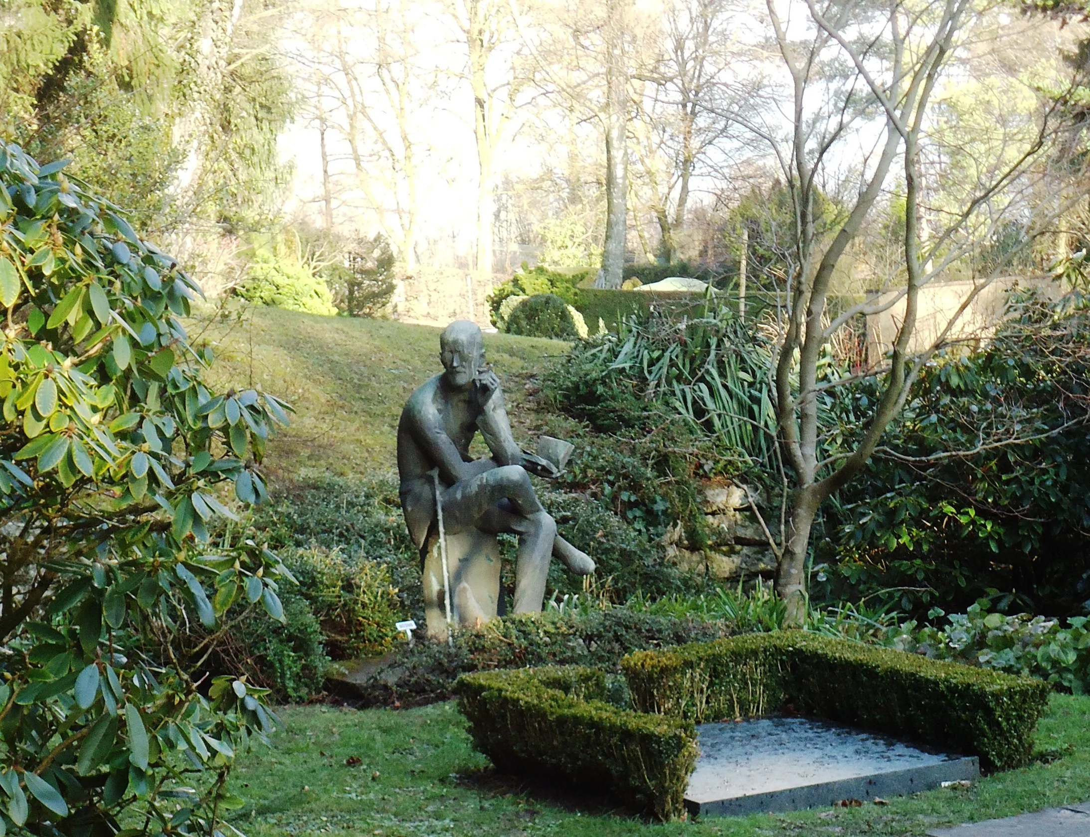 Dann geht die literarische Pilgerreise weiter zu den Gräbern zweier Theater-Grössen. Zunächst zu jenem der grossen Therese Ghiese. Sie spielt die Hauptrolle in der Uraufführung von Brechts „Mutter Courage“. Auch in den Uraufführungen von Dürrenmatts „Der Besuch der alten Dame“ und „Die Physiker“ ist sie die Nummer eins. Sie, die dem Zürcher Schauspielhaus lange Jahre treu war, hatte den ausdrücklichen Wunsch, in Fluntern begraben zu sein.