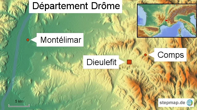 Das Hochplateau in 700 Metern Höhe oberhalb von Dieulefit ist karges Land, wo Getreide auf steinigen Feldern nur spärlich wächst, Krüppeleichen und Esskastanien die Hügel bedecken, Ziegenherden auf Brachland zu Hause sind und ein einziger Bauer noch Fleischtierhaltung betreibt. Der Blick reicht von hier über dutzende Kilometer nach Norden bis zum Vercors und nach Westen über das Rhônetal hinaus bis zu den Höhenzügen der Ardèche.