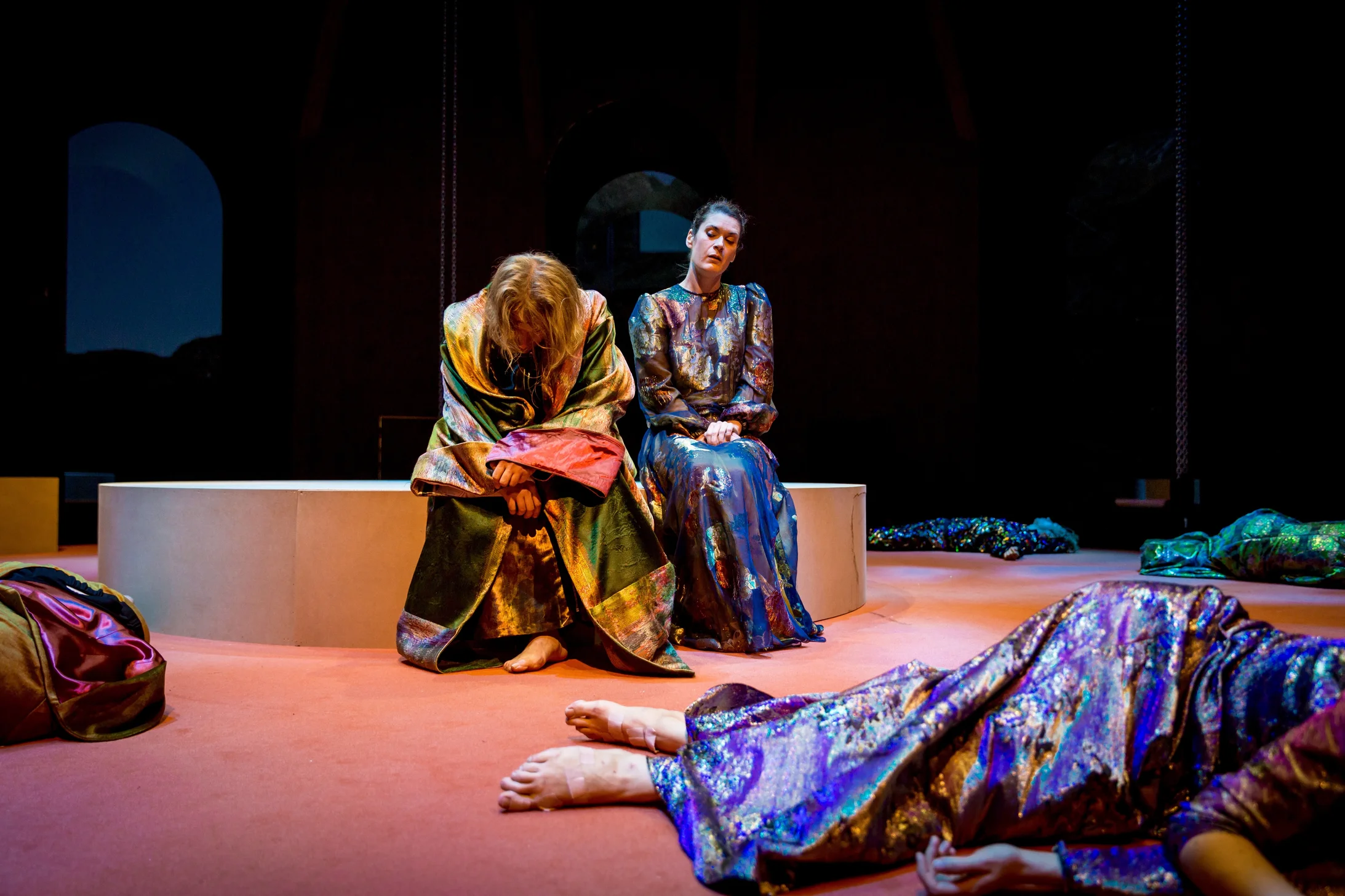 Das spricht besonders deutlich aus jenen von Herodes' zwei Gattinnen, den Origen-Tänzerinnen Riikka Läser und Bonnie Paskas: die erste Königsgattin, durch die Scheidung verhärmt, unterwürfig im schlichten, jedoch elegant geschürzten Silberlilakleid; die zweite, erhabene, ihrer Sache sichere Fürstin im Ballkleid mit gebauchter Schleppe, das bald weissgolden, dann rötlich, plötzlich smaragdfarbig schimmert. Beide kämpfen um den Thron für ihre ungleichen Söhne, der ältere in schmelzendem Tenor gesungen von Maximilian Vogler, der ungebärdige jüngere auf Messers Schneide getanzt von Torry Trautmann.