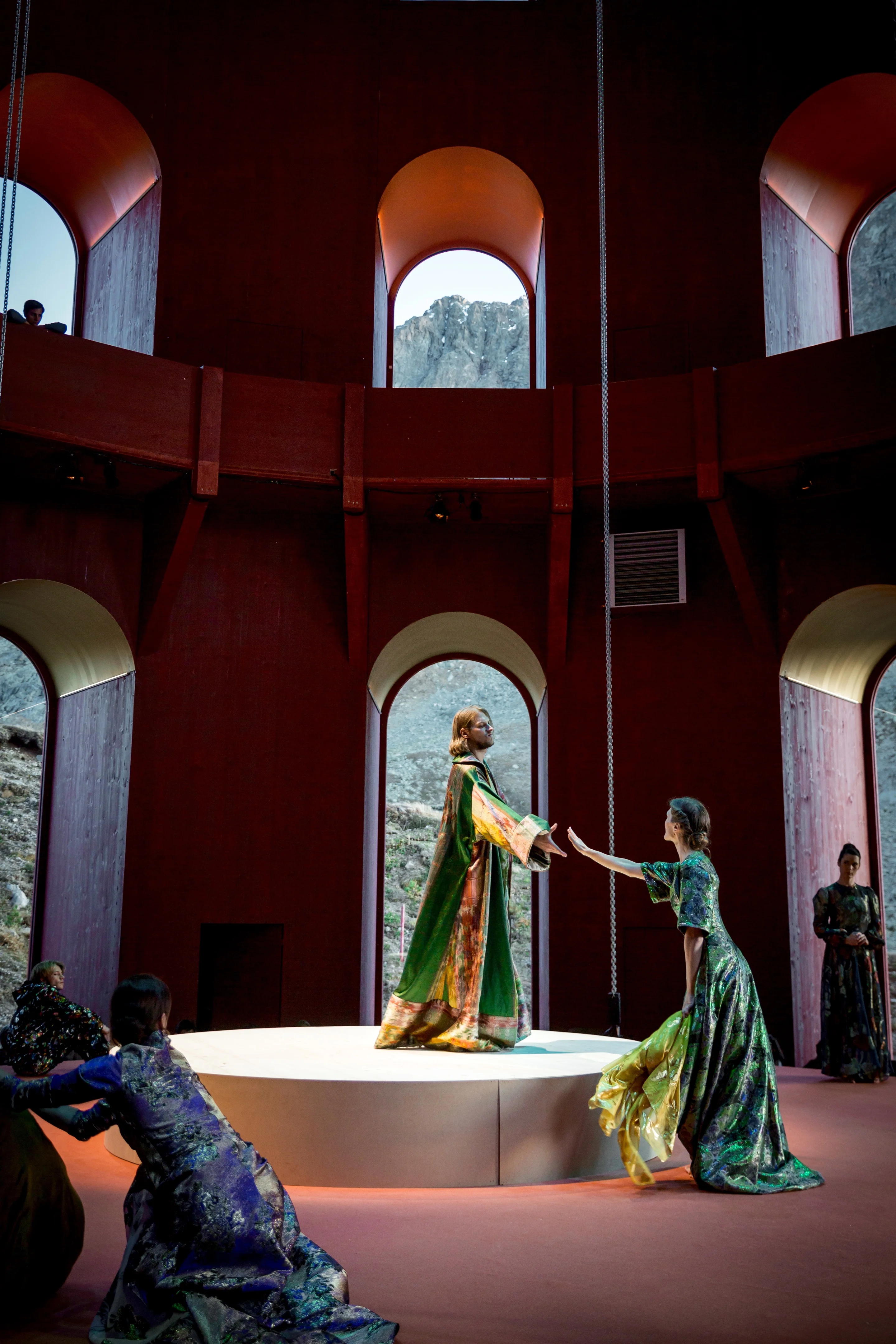 Wann war gemässigt moderne Musik zuletzt am Berg zu hören? Wer hat schon einen Flügel in ein Theater in eine wilde Landschaft gestellt? Das edle Instrument ist geschützt von Uffers massiver Savogniner Schreinerarbeit aus Holz der Alpen; diese ist sorgsam für die Gefahren da oben berechnet von Walter Bieler in Bonaduz, als Ganzes entworfen und in Dutzenden Modellen gebaut von Origens Intendant Giovanni Netzer. Alena Sojer entlockt dem Flügel Lieder des Russen Dmitri Schostakowitsch, der Emotionen auszudrücken weiss, selbst den Diktator Stalin jahrzehntelang im Nacken hatte. Die Origen-Pianistin spielt bestimmt und sanft, wunderbar fliessend im Fortissimo wie Pianissimo – und doch gab es längere Momente an dem Premierenabend, in denen die Musik beinah versank, weil das Geschehen auf der kreisrunden Bühne den Atem raubte.