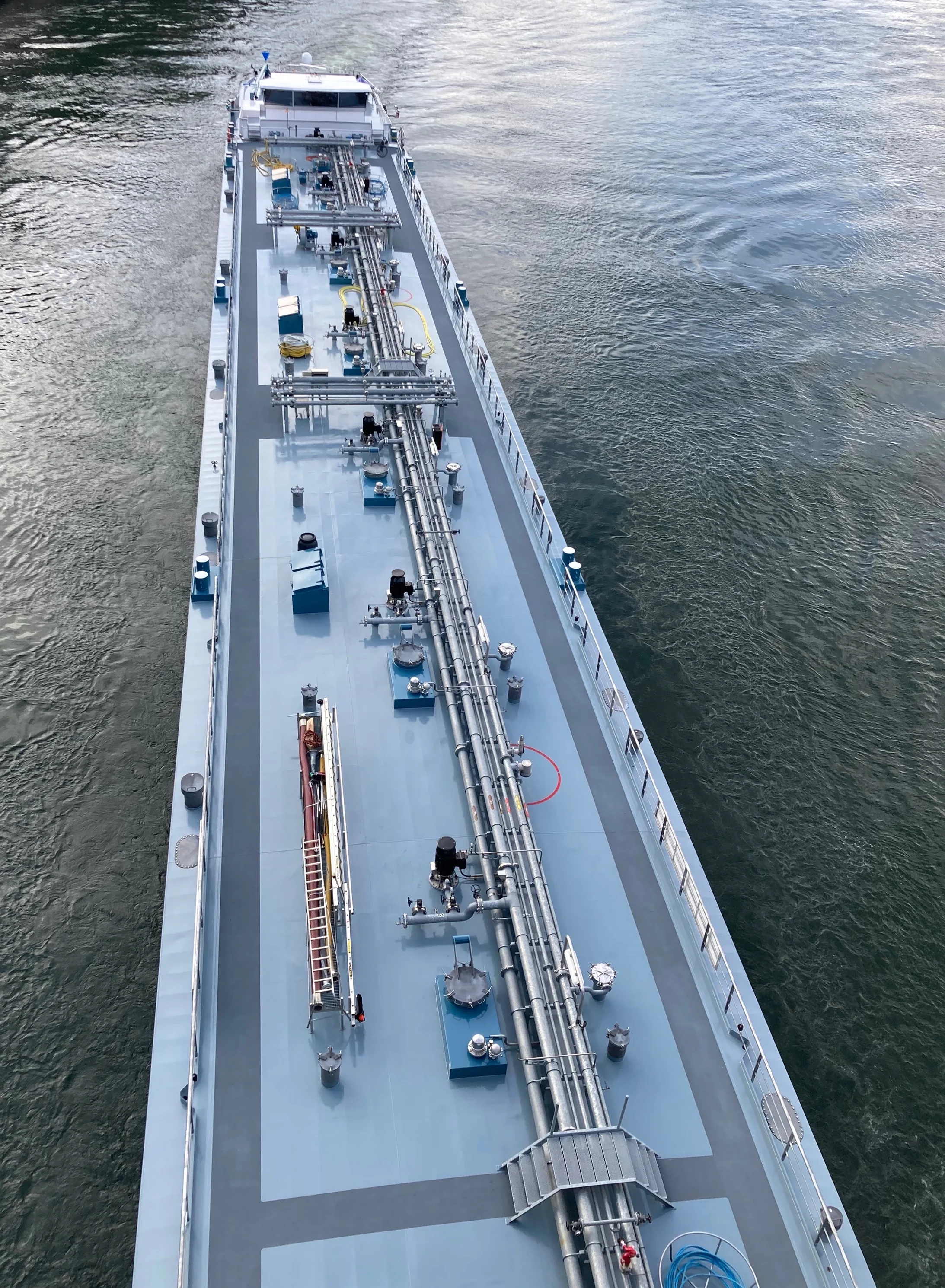 Aber mir bleibt keine Zeit, mich im Anblick der neuen Skyline zu verlieren, denn eben schiebt sich langsam ein Tankschiff durch die zweite Öffnung der Mittleren Brücke. Als ehemaliger Kapitän kann ich nicht anders, als das Manöver des über 130 Meter langen Schiffs mitzudenken: Kurs halten, solange das Heck die Brücke noch nicht passiert hat, auch wenn sich der Bug dem Landesteg der Fähre am steilen Ufer unter der Pfalz gefährlich zu nähern scheint, dann das Steuerruder nach links legen und vom Aussenrand des Rheinknies, wo die Strömung gegen das Ufer drückt, schräg auf das Grossbasler Joch der Wettsteinbrücke zufahren.