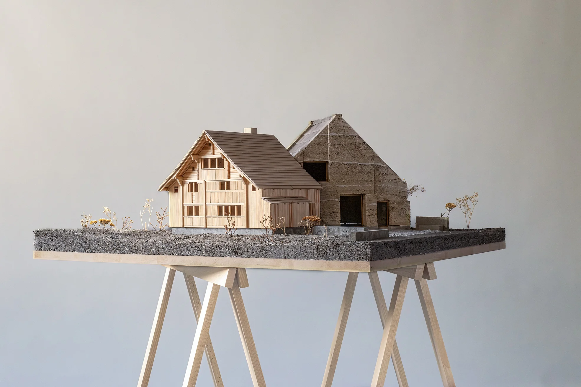 In der Deutschschweiz war und ist man nach wie vor etwas zurückhaltender. Das wird sich, schaut man sich die neun Projekte an, die Studentinnen und Studenten der ETH für diese Ausstellung auswählten, wohl auch nicht schnell ändern. Zu sehen sind vorwiegend Sanierungen, so einer Fassade (Basler Kantonalbank), einer Energieversorgung (Siedlung Telli Aarau), zweier Hotels (Schatzalp Davos und Dorfhotel Poort A Poort Grengiols), eines Dorfhauses (Maison Duc Saint-Maurice). Das wirkt etwas verhalten und man hätte gerne frechere Interventionen gesehen. Am auffälligsten ist das Projekt von Allen+Crippa in Grabs, wo neben einem renovierten Holzhaus etwas abgedreht ein ähnliches Haus in Beton aufgezogen wurde. Da prallen zwei Haltungen aufeinander, die erst in diesem Zusammenspiel ein reizvolles Ensemble schaffen.
