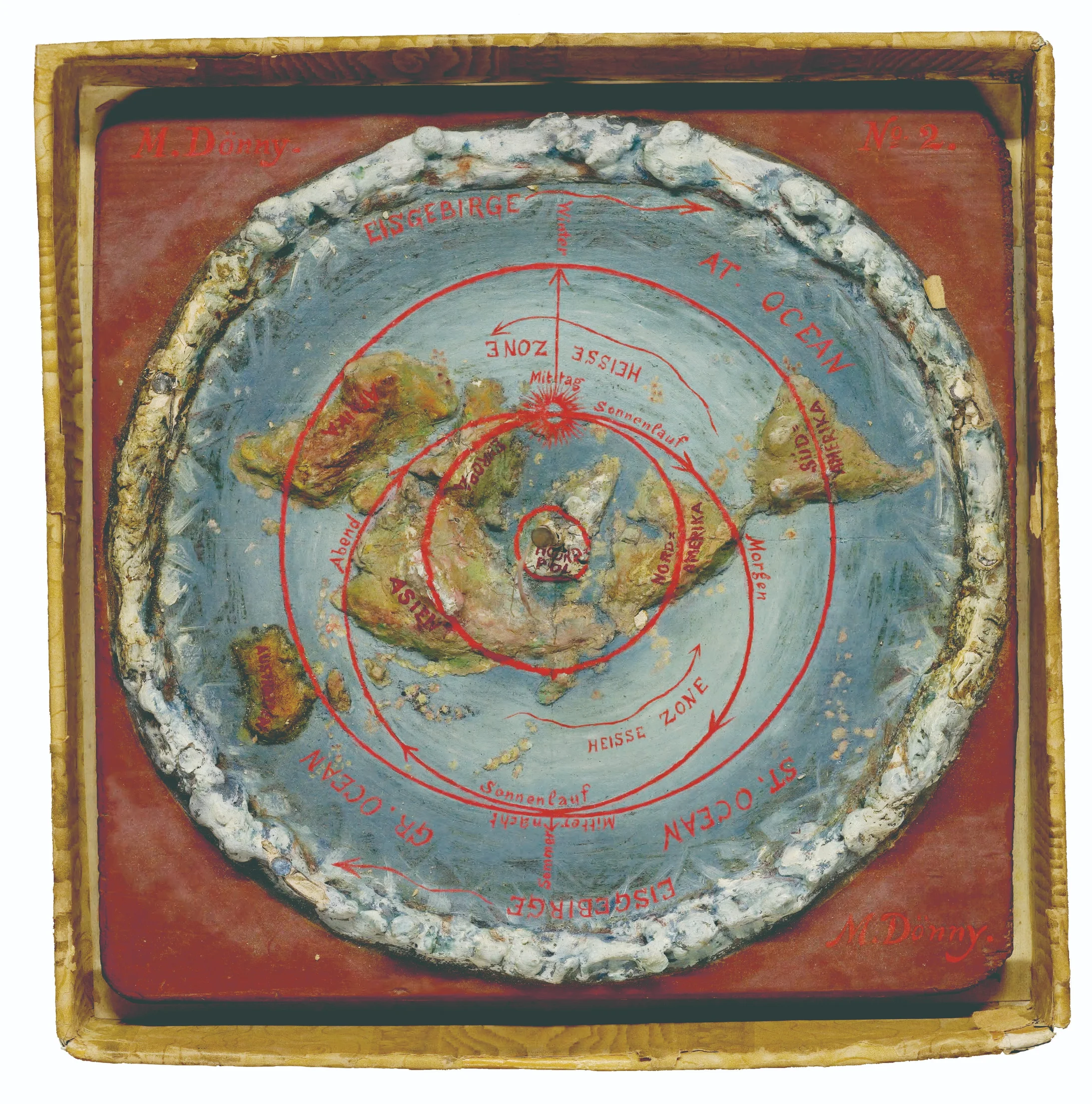 Doch woher hat er seine Ideen, die er noch in weiteren Broschüren ausführen wird – und im Relief, auf das Urs Hafner im Keller des Bundesarchivs gestossen ist. Drei Jahrzehnte lang habe er sich mit dem Thema befasst, erklärt Dönni selbst um die Jahrhundertwende. Dreissig Jahre zuvor hat am schnurgeraden Bedford-Kanal in England eine Wette stattgefunden, bei der die Anhänger der Scheibenerde unterlagen und über die die «Luzerner Zeitung» berichtet hat. Dort hat ein exzentrischer Brite namens Samuel Birley Rowbotham der Propagierung der Scheibenerde sein Leben gewidmet; seine Bücher finden Widerhall quer durch Europa. Sie sind zwar weder in Dönnis Haus noch in den Luzerner Bibliotheken der Zeit auffindbar. Aber einzelne seiner Formulierungen weisen darauf hin, dass er Rowbothams Ideen kennt.