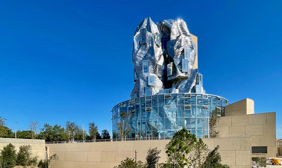 Am Rande der Altstadt von Arles mit ihren Denkmälern aus Römerzeit und Hochmittelalter lag ein 65’000 Quadratmeter grosses aufgelassenes Industrieareal. Hier wartete die französische Staatseisenbahn SNCF seit 1848 in riesigen Hallen ihr Rollmaterial. Seit 1984 überliess man die Gebäude dem Zerfall. 2010 erwarb die Schweizer Kunstmäzenin Maja Hoffmann das Grundstück samt den Ruinen. Sie wandelte es im Folgenden zu einem kulturellen Begegnungszentrum um. Prunkstück des Areals ist der von Frank Gehry entworfene 56 Meter hohe Turm.