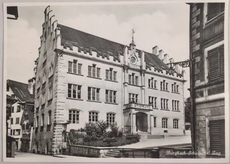 Die Bildungsexpansion nach 1850 ruft nach Raum. Die Stadt Zug beispielsweise errichtet auf den Kellergewölben des alten Spittels ein repräsentatives Schulgebäude – aus Natursandstein und gehalten ganz im Stil der zeitgenössischen Neugotik: das Burgbachschulhaus. Der Bau wird 1875 eingeweiht und zum zentralen Schulhaus der Stadt Zug – allerdings nur für Knaben.[1]