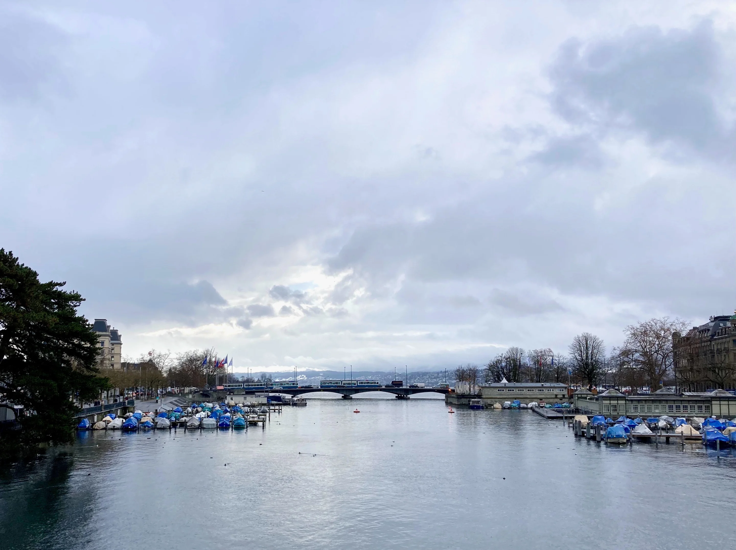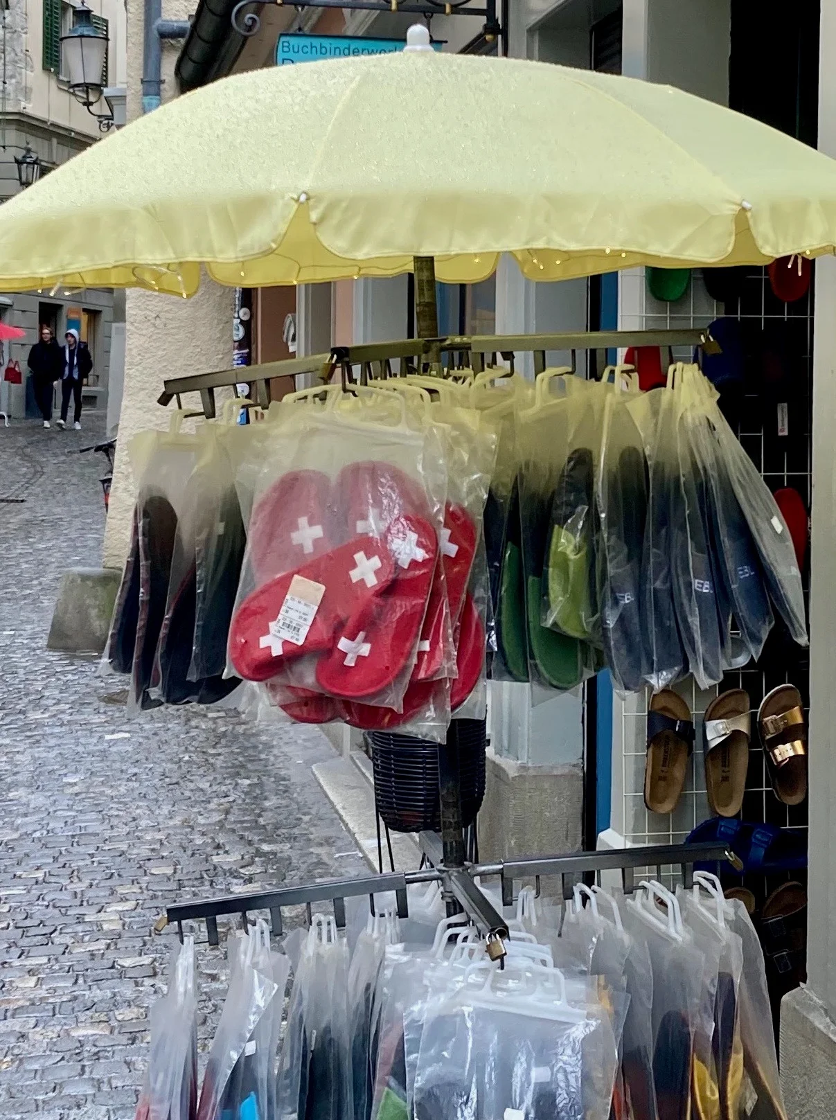 Auf dem Weg zur Limmat entdecke ich auf einem Ständer vor einem Laden rote Socken, die mit Schweizerkreuzen dekoriert sind. «So weit ist es mit eurem stolzen Wappen gekommen: Es weht über Schrebergärten und prangt auf Socken. Wieso eigentlich nicht in Europa?» – Merry Christmas and Happy New Year!» – Ein kurzes Knacken und Father Christmas ist weg. Nur die Limmat fliesst wie eh und je, und der Blick geht in jene sehnsüchtig machende Ferne, ohne welche die Schweiz nicht Heimat wäre.