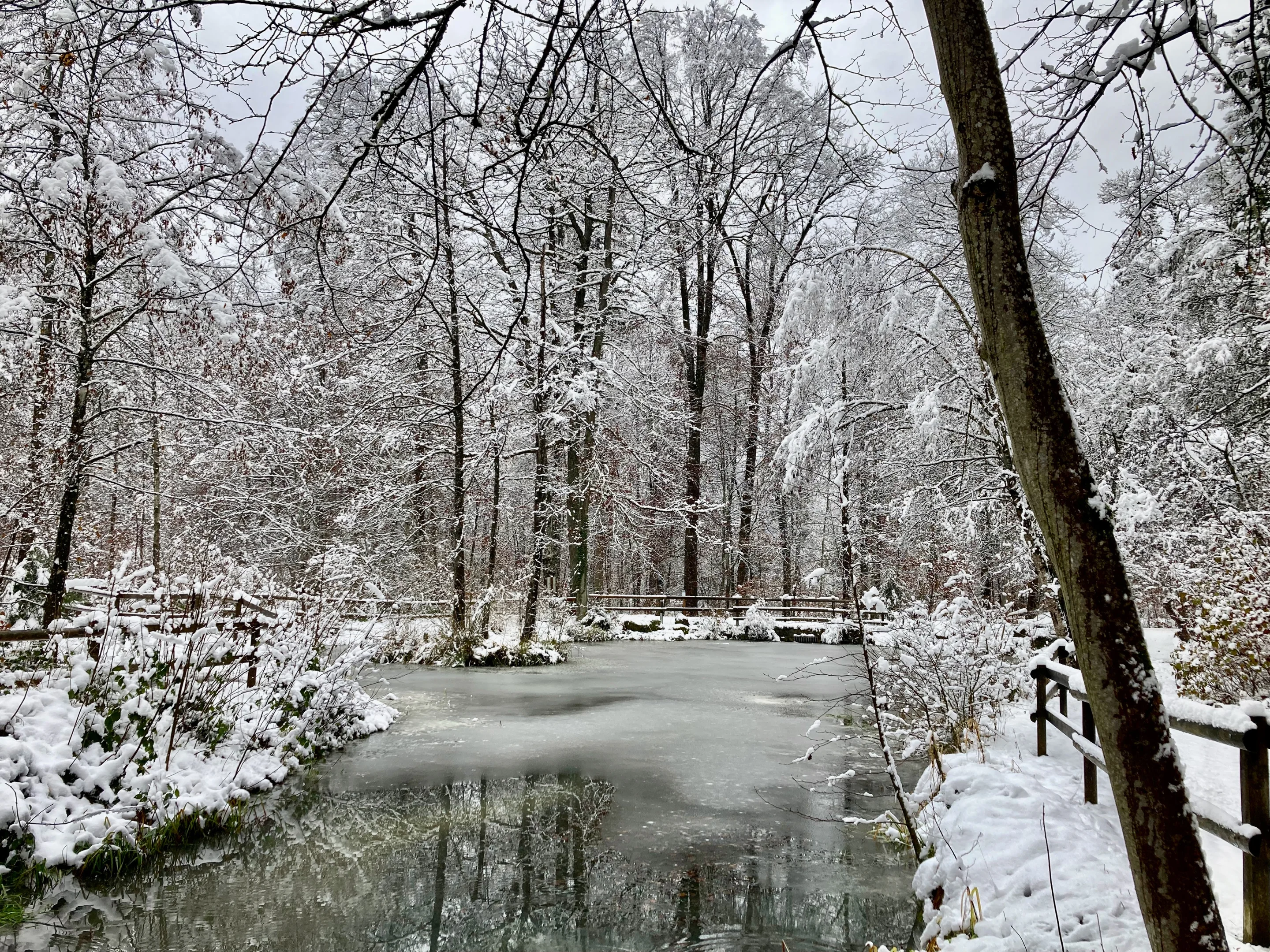 Bei der Kirche Fluntern wechsle ich in den 6er zum Zoo. In der Nacht hat es am Zürichberg geschneit. Jetzt fallen Nassschneepakete von den Bäumen. Eines trifft meinen Nacken. Kühles Nass rinnt an meinem Schal vorbei und verläuft sich irgendwo an meinem Rücken, was das Wandern immer so abwechslungsreich macht.