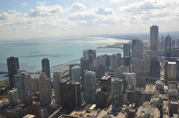 Heute ist es, als strebe Chicago, seiner Bodenständigkeit zum Trotz, erneut nach Höherem. Seine spektakuläre Skyline ist Ausdruck einer ungehemmten Verehrung des Vertikalen, die erst vor drei Jahren einen Dämpfer erhalten hat, als die Arbeiten am „Chicago Spire“ wegen Finanzierungsproblemen eingestellt werden mussten. Der spiralförmige Wolkenkratzer des spanischen Architekten Santiago Calatrava hätte 610 Meter hoch werden sollen. Er wäre das höchste Gebäude Amerikas geworden, ja der westlichen Hemisphäre, und hätte Chicagos andere Riesen wie den 442 Meter hohen Willis Tower (den früheren Sears Tower) oder das 343 Meter hohe John Hancock Building („Big John“) deutlich überragt. Chicagos – und der Welt – erster Wolkenkratzer war 1885 gebaut worden, das zehn Stockwerke hohe Home Insurance Building, eine Stahlkonstruktion.