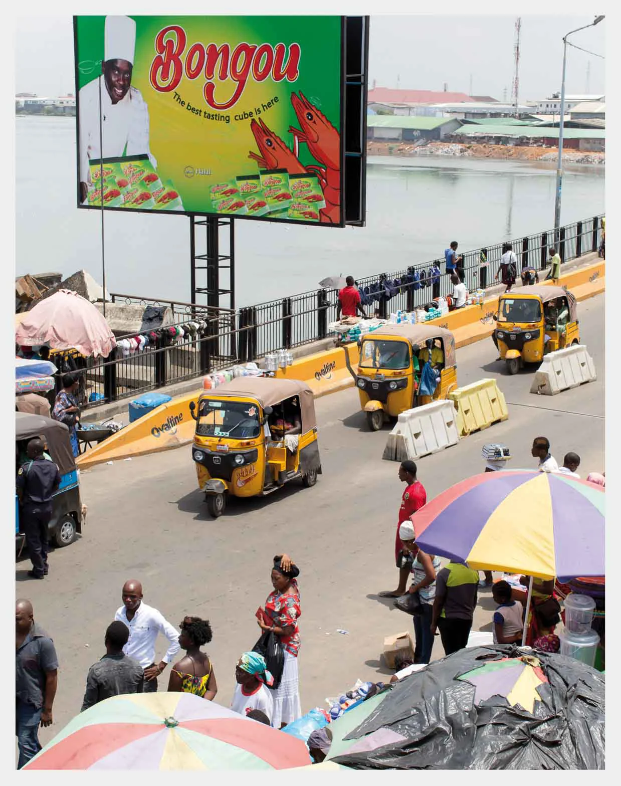 Diese Beziehungen stellen sich nicht in erster Linie über die Inhalte der Bilder her. Das geschieht zwar auch, aber noch wichtiger ist, dass Herzau Formen und Farben miteinander korrespondieren lässt. Er ist nun einmal ein denkender Fotograf, der Zeichen, Formen, Kontraste und Farben aufspürt, die das zum Ausdruck bringen, was er auf dem Weg Liberias jetzt als wichtig erachtet. Das ist ästhetisch zu verstehen. Die Bilder sind etwas anderes als die gesprochene Sprache.