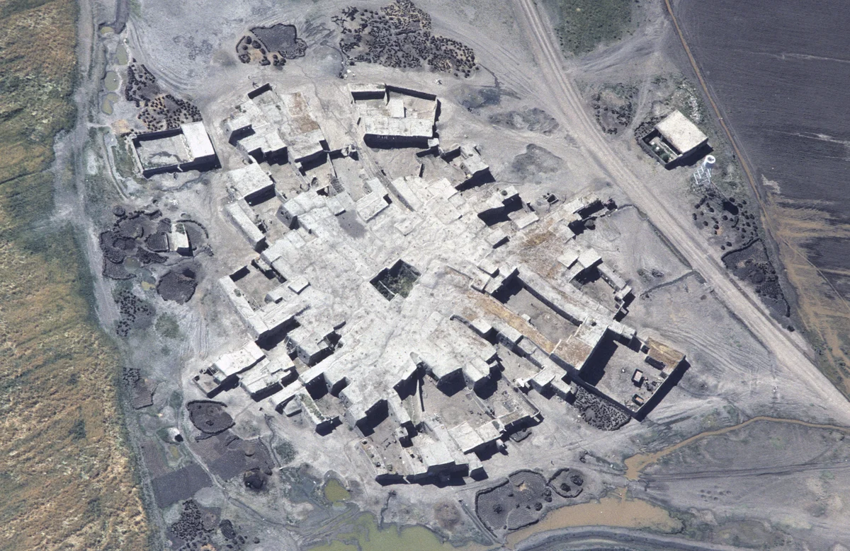 Nicht gerade eine kleine Familie, eher ein ganzer Clan assortiert mit Ziegen und Schafen ... Kuppeln prägen die Dachlandschaften Zentralpersiens. In den angrenzenden Provinzen herrscht das Flachdach vor. In Aserbeidschan und Kurdistan ist das einigermasssen erstaunlich, fällt doch dort jedes Jahr bis zu 5 Meter Schnee – mehr als einem Flachdach aus ungebranntem Lehm zuzumuten ist.