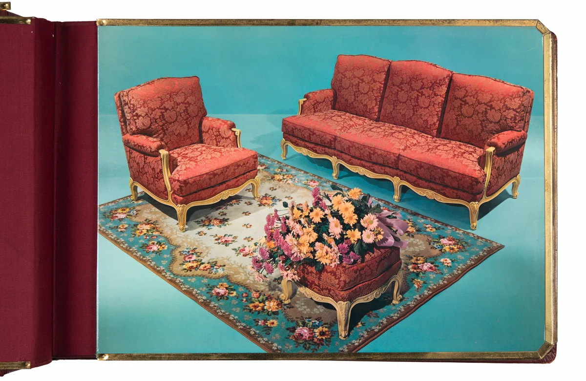 Manches gibt auch höchst anregende Rätsel auf. So ist ein Industriefoto von einer Sitzgruppe zu sehen, das sich in einem voluminösen Band mit kartonstarken Innenseiten und einem aufwendig verzierten und geradezu armierten Einband befindet. Da wüsste man gerne mehr.