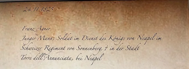 In Neapel gestorben, in Utrecht gestorben, in Torre dell’Annunciata gestorben: Das sind nur wenige von wahrscheinlich Tausenden Schweizern, die in fremden Diensten ums Leben kamen. Die meisten starben fast anonym, ohne Spuren zu hinterlassen. Einige sind in Sterbebüchern von Pfarreien notiert. Die jetzt in Stans eröffnete Ausstellung im Nidwaldner Museum „Salzmagazin“ zeigt Ausschnitte aus diesen Sterberegistern.