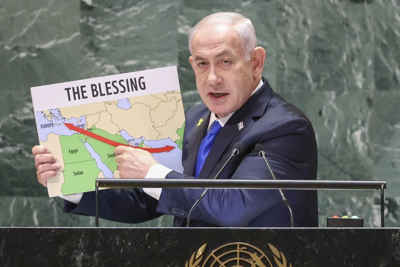 Wie er das gerne macht, unterstrich der Premier seine Ausführungen mit Karten, deren eine den Iran und dessen Alliierte zeigte. Eine andere Karte zeigte Israels potenzielle arabische Alliierte in der Region. Ein Detail: Die Karten wiesen das illegal besetzte Westjordanland als Teil Israels aus, ein Zückerchen an die rechtsextremen Mitglieder in Netanjahus Koalition, für welche die West Bank und Gaza fraglos zum jüdischen Staat gehören.