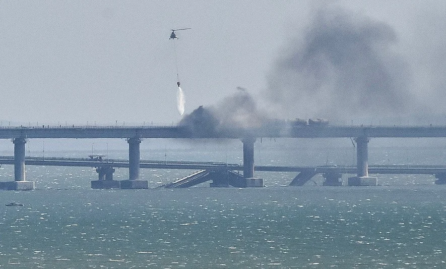 Auf der einzigen Brücke, die Russland mit der Krim verbindet, ereignete sich am frühen Samstagmorgen eine Explosion. Feuer brach aus, ein Teil der Brücke stürzte ein. Alles deutet auf einen Anschlag pro-ukrainischer Partisanen hin. Die teilweise Zerstörung der Brücke ist ein schwerer Schlag für Putin.