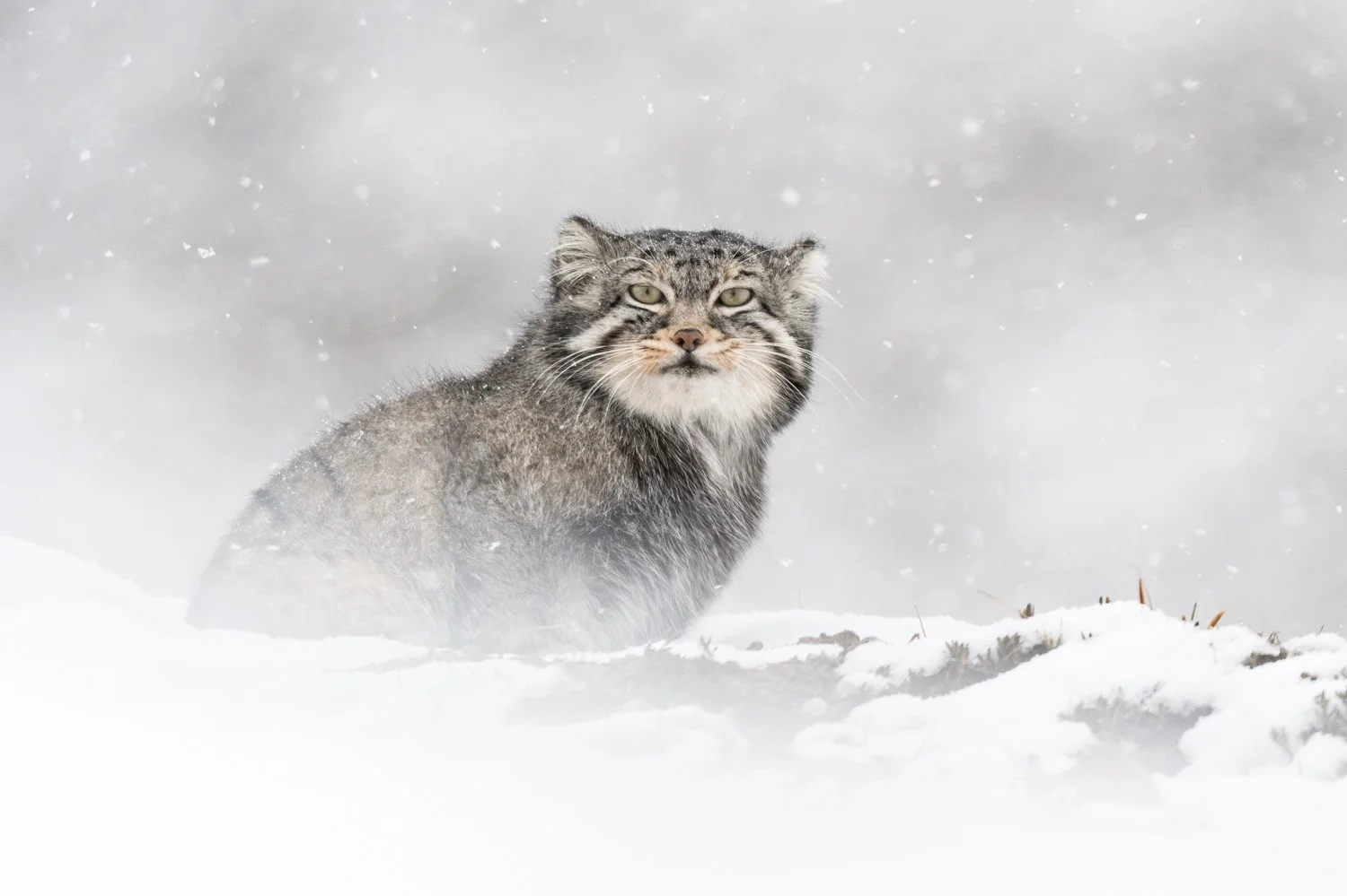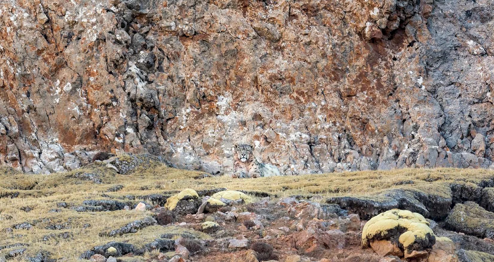 Sein «ikonisches» Bild eines Schneeleoparden in freier Wildbahn ist derart unspektakulär, dass Vincent Munier zunächst nicht einmal wusste, dass sich in der – wenig aufregenden – Aufnahme eines Falken, der da auf einem Felsvorsprung sitzt, noch ein zweiter Gast eingerichtet hatte. Es brauchte seine Zeit, bis er realisierte, dass die unauffällige Ausbuchtung der Horizontlinie Scheitel und Ohren der grossen Katze repräsentierten, deren gelassener Blick dem ahnungslosen Fotografen galt.