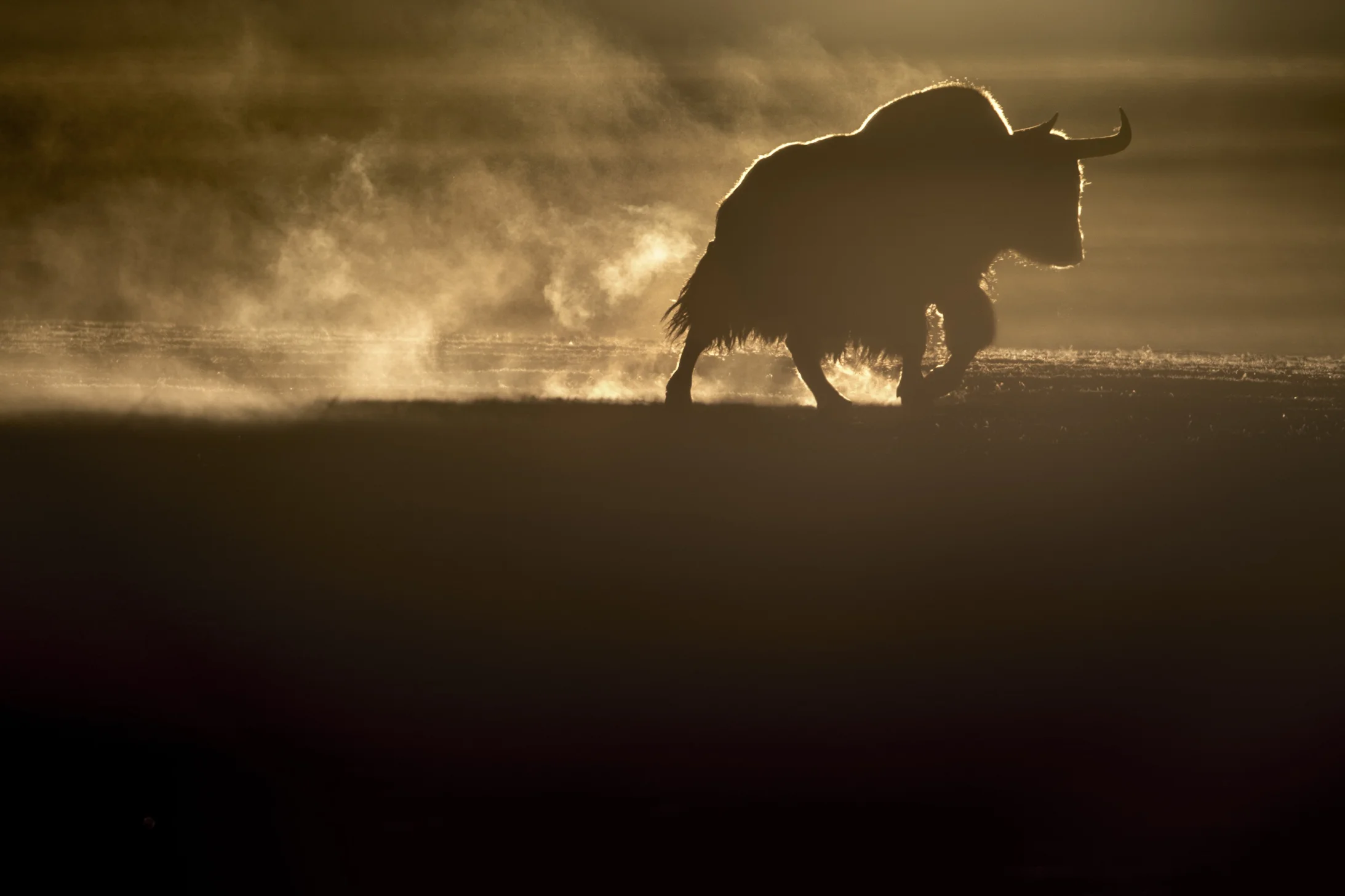 Acht Jahre hat der Meisterfotograf aus den Vogesen an das Projekt gewandt, war in verschiedenen Regionen Osttibets unterwegs, konfrontiert, wie er in Interviews sagte, mit der allgegenwärtigen, oft brutalen chinesischen Polizei, die die einheimische Bevölkerung schikaniert. Erkundet hat er dabei Einöden von schwer vorstellbarer Leere und Wildheit der Elemente, die dann bei aller vermeintlichen Lebensfeindlichkeit überraschende Tierbegegnungen bereithalten konnten. Am eindrücklichsten zweifellos diejenige mit einem bedrohlich schnaubenden Wildyak, deren Stiere selbst dem Gaur an Masse und Gefährlichkeit nahekommen und deren gewaltige Hörner und zottiges Fell sie wie aus Urzeiten herübergekommen erscheinen lassen.