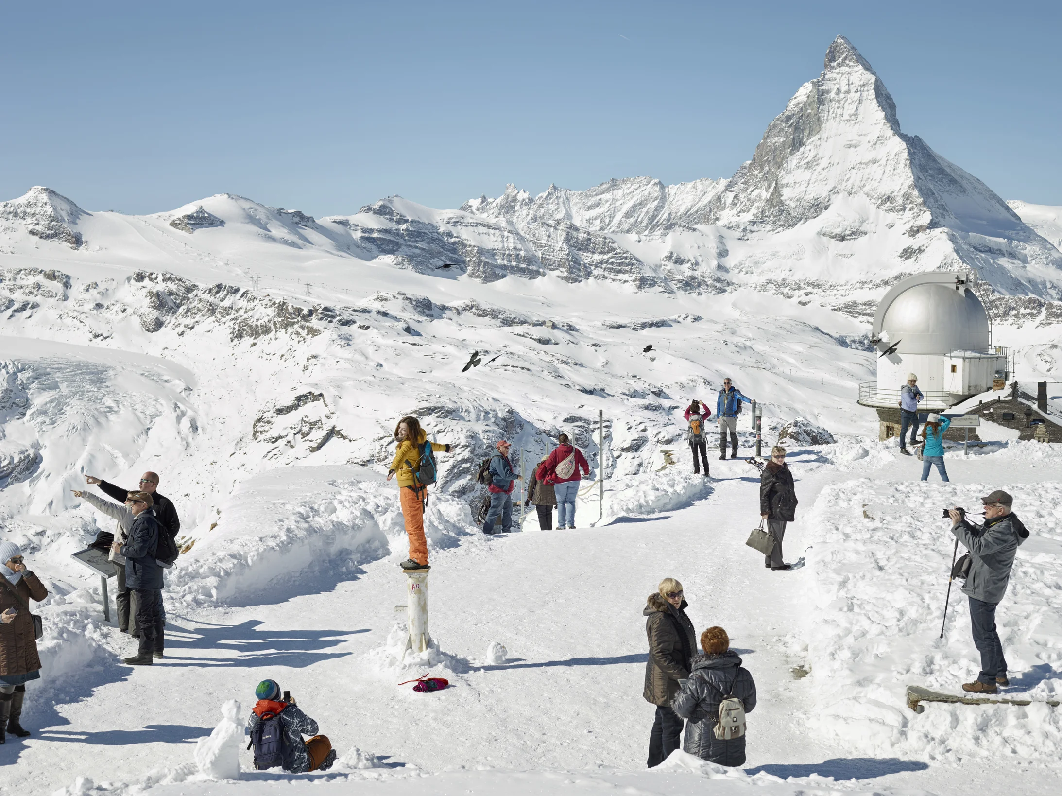 Am präzisesten hat der Engländer Simon Roberts die Aufgabe gelöst. Er hat Touristen auf Aussichtsplattformen vor Schweizer Landschaften fotografiert. Diese Bilder sind von grösster fotografischer Präzision und zeugen vom souveränen Können des Fotografen, der 1974 geboren ist und es schon zum Ehrenmitglied der Royal Photographic Society gebracht hat.