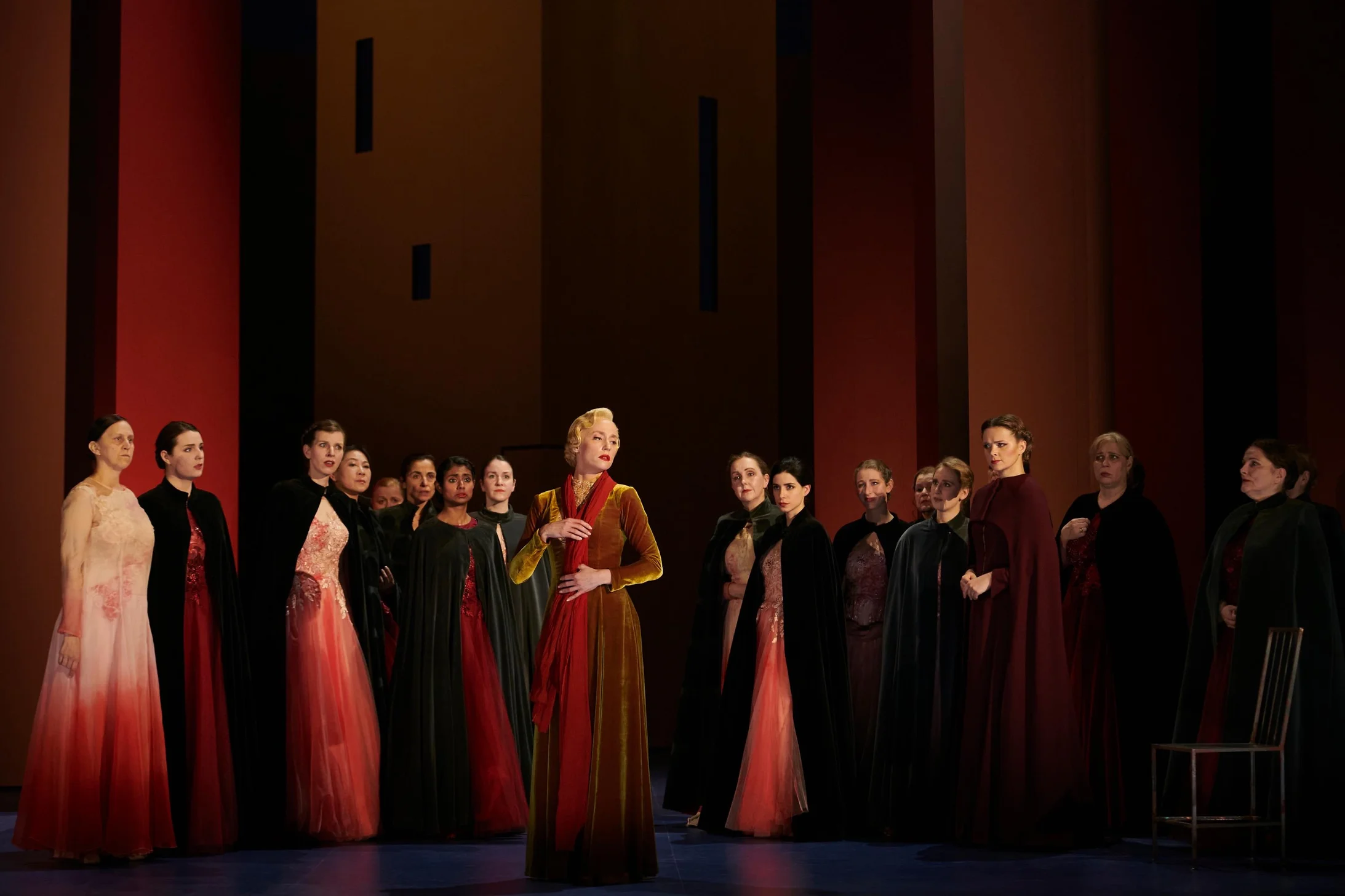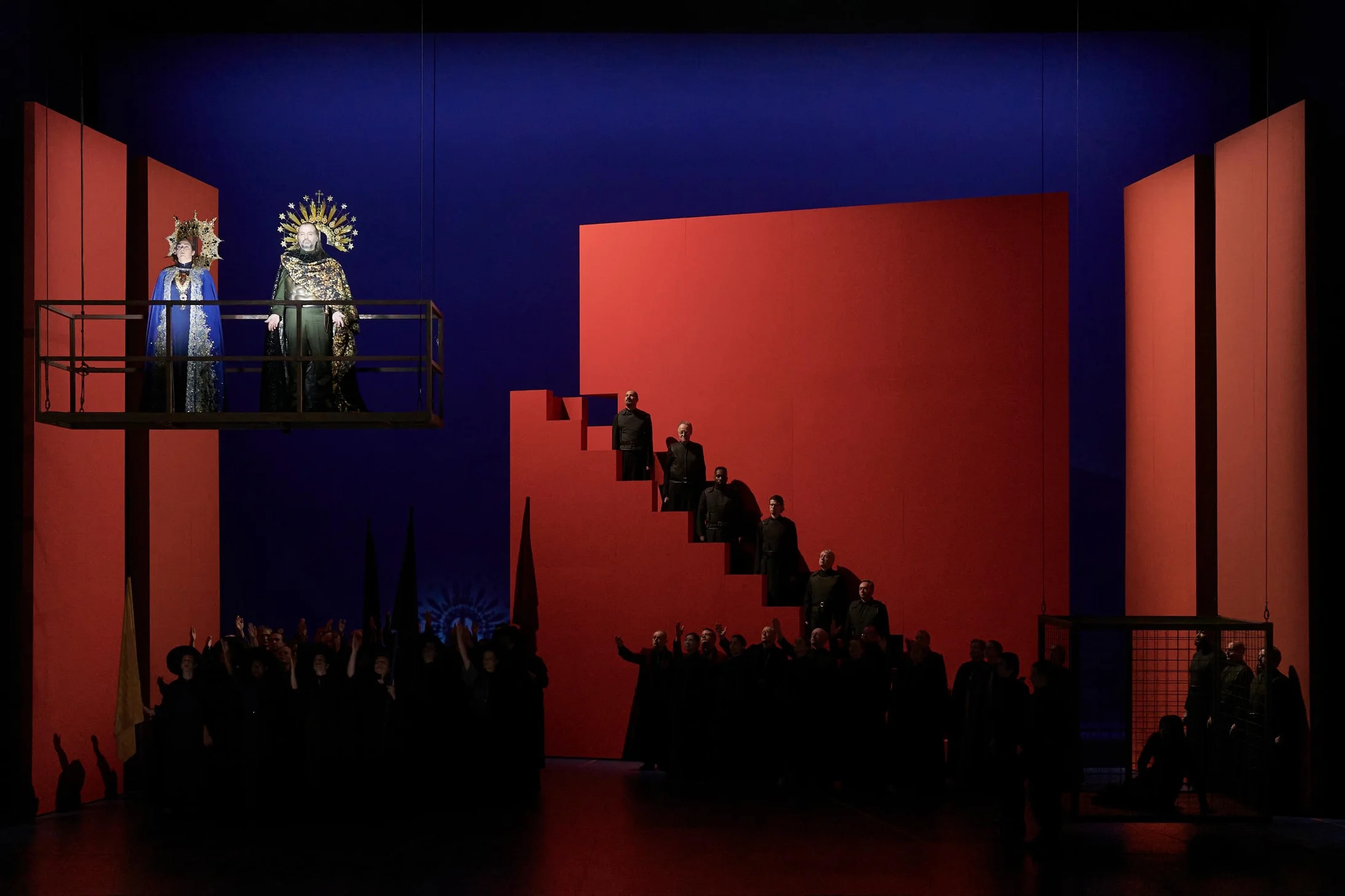 Und wie! Das einfach wirkende, durchwegs in dunkleren Rottönen gehaltene Bühnenbild ist ein Kunstwerk futuristischer Prägung. De Chirico hätte es nicht grossartiger gestalten können. Es sagt alles aus über das düstere Zusammenspiel geballter Macht, welche als Mauer hinter all den menschlichen Regungen drohend und manchmal rotglühend aufragt und sie zu erdrücken scheint.
