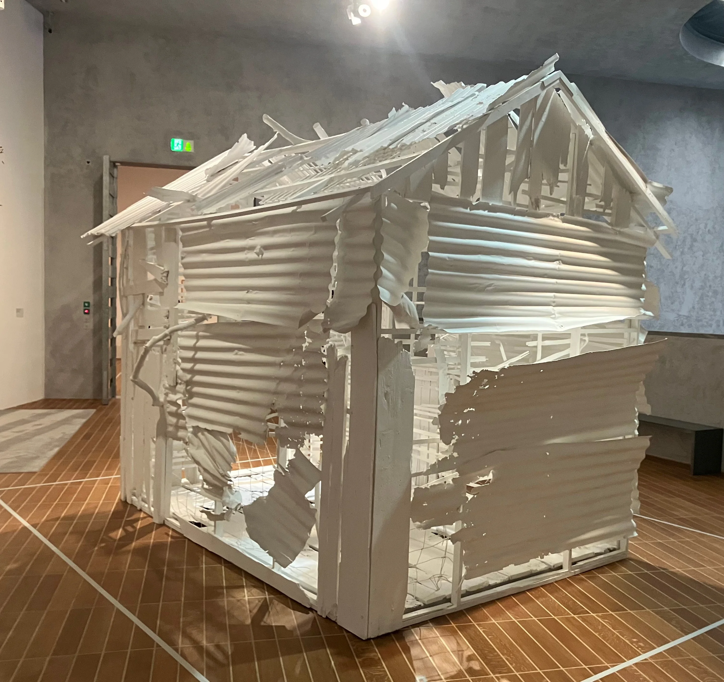 Zu sehen ist nicht der Geist, sondern was er hinterlassen hat – die von einer Explosion im Innern zerstörte Hütte.