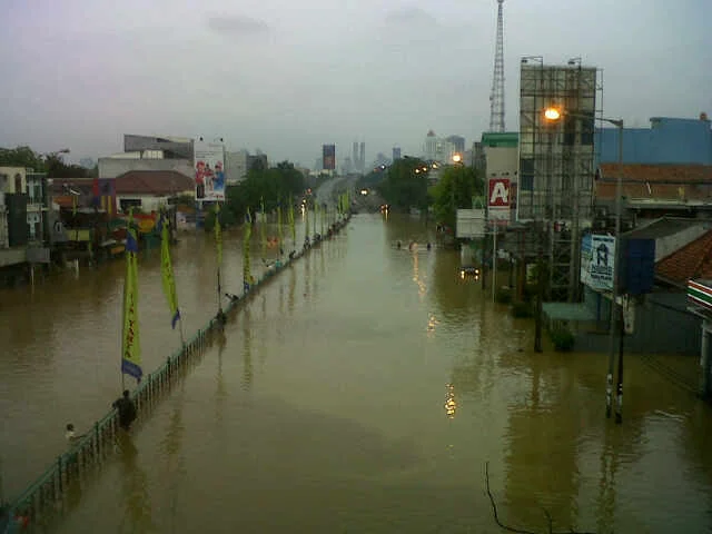 Nachdem das Manggarai-Schleusentor geöffnet worden war, und pro Sekunde 500 Kubikmeter Wasser in den Kanal strömten, brach in Zentraljakartas Geschäftsviertel ein 30 Meter langer Deichabschnitt des Westflut-Kanals, der die Wassermassen in die Javasee bringen sollte.