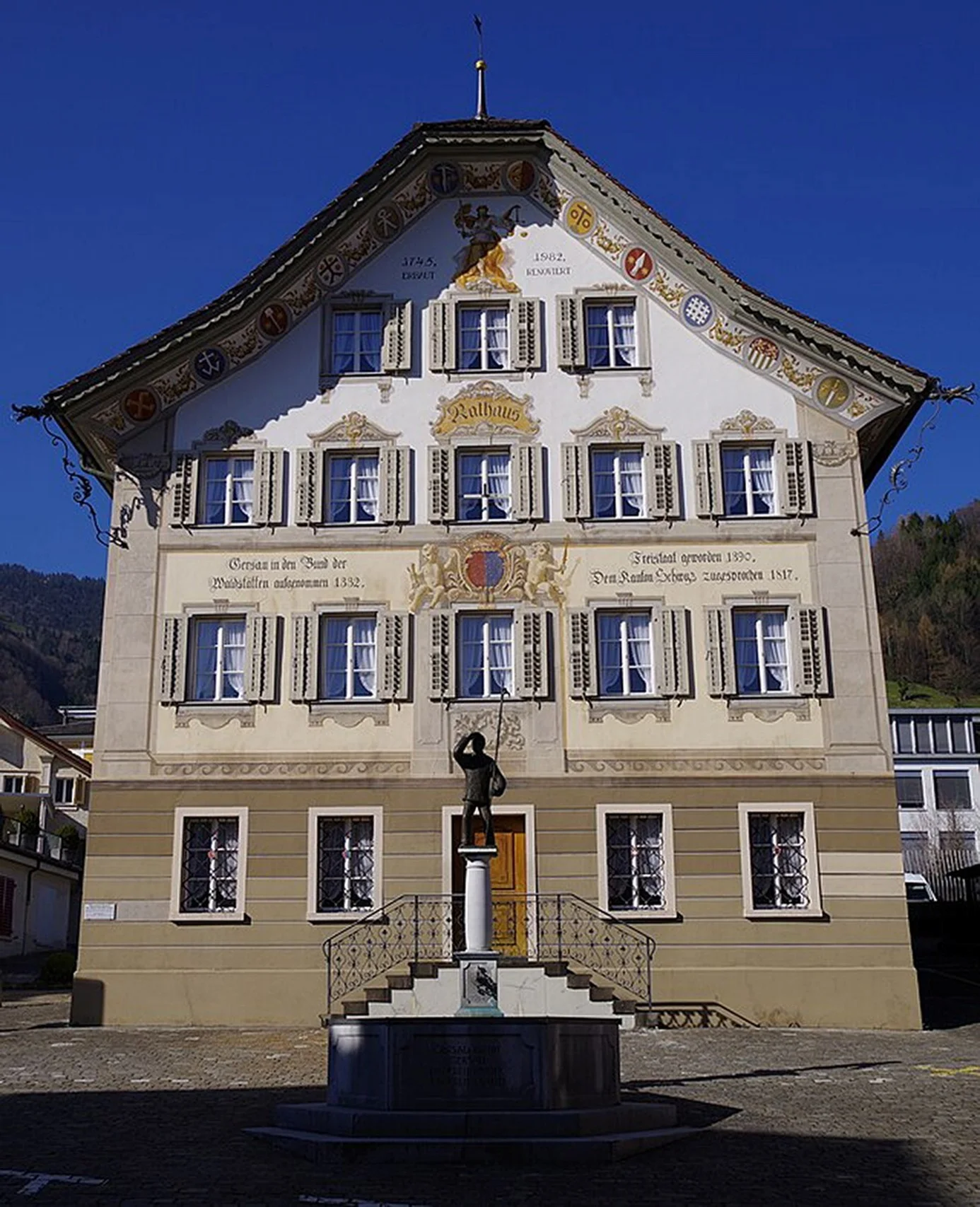 Gersau – diese kleine Republik: «Ein freies Volk, ein freies Land», so verkündet es der Brunnen vor dem majestätischen Rathaus von 1745. Und zugleich war der Zwergstaat am Rigifuss ein Zugewandter Ort der Alten Eidgenossenschaft wie beispielsweise die Abtei Engelberg oder die Stadt St. Gallen, das Oberwallis oder «l’État et la République de Genève».