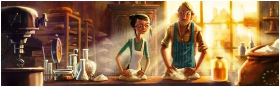 Sylvia und Alex, vom Korn zum Brot im Zeichentrickfilm „The Golden Ear“ im EU-Pavillon.