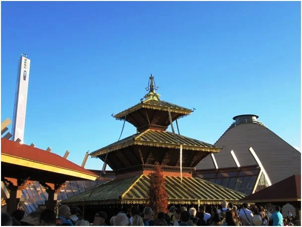 Nepals Pavillon wurde wegen des Erdbebens im April nicht sofort eröffnet, denn die nepalesischen Arbeitskräfte wurden zu Hause gebraucht. Der Pavillon wurde von freiwilligen Handwerkern aus Brescia und Bergamo fertig gebaut.