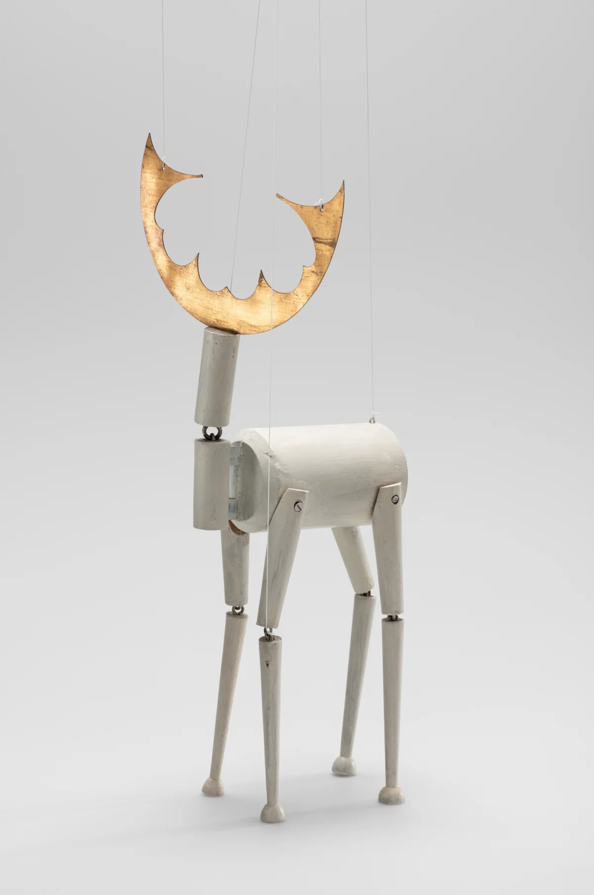 Sophie Taeuber-Arp: Hirsch (Marionette für König Hirsch), 1918, Öl auf Holz, Messingblech Metallösen; 50 x 17.8 x 18 cm; Museum für Gestaltung, Zürcher Hochschule der Künste, Kunstgewerbesammlung; Foto: © Courtesy Umberto Romito, Ivan Suta, Museum für Gestaltung Zürich, Kunstgewerbesammlung, ZHdK