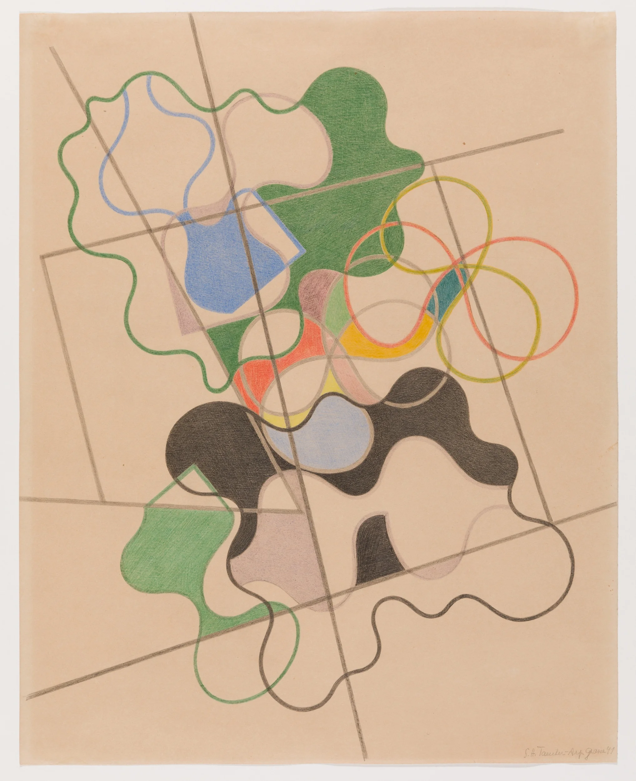 Sophie Taeuber-Arp: Géométrique et ondoyant, 1941, Farbstift auf Papier, auf Karton aufgezogen, 48.5 x 37.5 cm; Museo d'arte della Svizzera Italiana, Lugano, Collezione Cantone Ticino