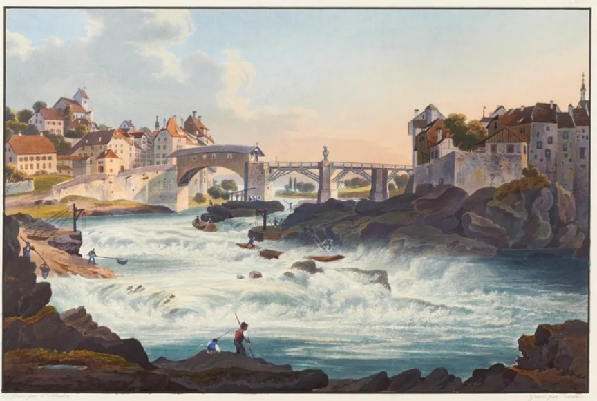 Das hat weniger mit den Flussübergängen zu tun als damit, dass der Rhein vom Bodensee über Basel bis nach Holland während Jahrhunderten eine wichtige Transportroute für Mensch und Ware gewesen ist. Als Flussanrainer wird man dort besonders reich, wo die Wasserstrasse wegen natürlichen Hindernissen unterbrochen ist. Schaffhausen verdankt seinen einstigen Reichtum dem Rheinfall (von den Schiffersleuten früher auch «Grosser Lauffen» genannt), wo die Warenströme aufs Land verlegt werden mussten und so den Behörden Zolleinnahmen und der lokalen Bevölkerung Arbeit bescherte. Weiter flussabwärts gab es bis zum Meer nur noch zwei ähnliche Hindernisse, den «Mittleren Lauffen» (auch Koblenzer oder Ettikoner Lauffen genannt) und den «Kleinen Lauffen» bei Laufenburg, welcher – ähnlich wie in Schaffhausen – das Städtchen einst wichtig und reich gemacht hatte. Wenn man die alten Bilder betrachtet, begreift man, wieso es dort immer wieder zu tödlichen Unfällen gekommen ist. Beim Bau des Kraftwerkes Laufenburg (1908) wurden dann die Felsen im Fluss gesprengt.
