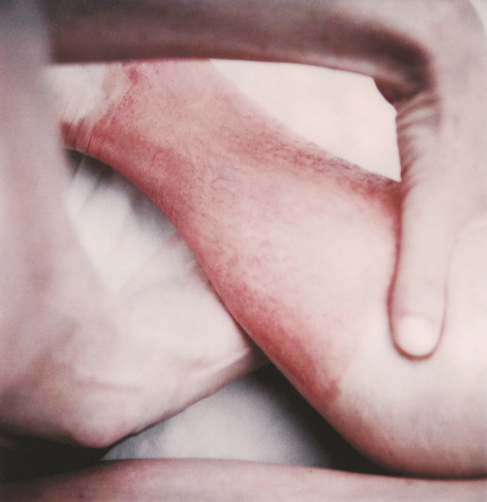 Sechs beinahe quadratische Fotos, C-Prints von Polaroid-Fotos, fügen sich zu einem Ganzen. Aus dunklem Grund leuchten helle Gliedmassen, die wir nur schwer bestimmten Körperteilen zuordnen können. Wir erkennen wohl Arme, Beine, eine Rückenpartie, Füsse, doch wie genau sie auf einander bezogen sind, ist schwer zu sagen. Wir sehen eine dünne, verletzliche, von Sommersprossen übersäte und sicher hochsensible Haut und dunkle, sich ordnendem Kämmen widersetzende Haare. Die fotografierten Körperteile fügen sich zu einer sich über alle sechs Tafeln von links unten nach rechts oben weich und lebendig fliessenden Linie, zu einer Art Bilder-Strom. «Block XXX» heisst die 1993/94 entstandene Arbeit von respektabler Grösse (254 x 377 cm). Der Titel wirkt lapidar, wie in Stein gemeisselt, und er verzichtet auf jeden inhaltlichen Brückenschlag: ein entschieden kompromissloses Statement.
