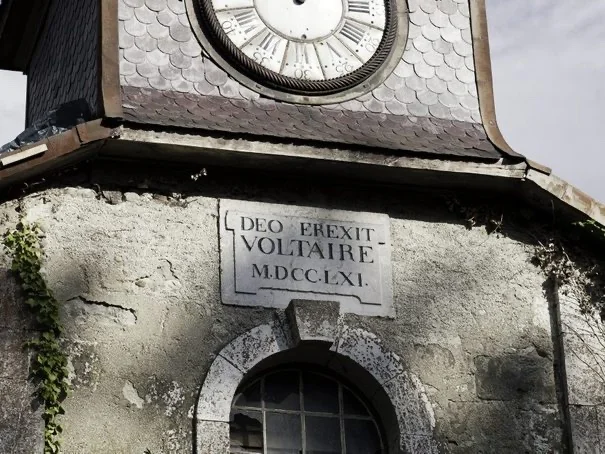 Als er die baufällige Kirche des Dörfchens restauriert, lässt er über dem Eingang eine Tafel anbringen: DEO EREXIT VOLTAIRE – für Gott hat Voltaire (diese Kirche) errichtet. Hat der alte Lästerer etwa mit der Religion seinen Frieden gemacht? Das ist kaum zu befürchten. Schon die Tafel zeigt, wie es gemeint ist: Das Wort VOLTAIRE ist deutlich grösser als die übrigen.