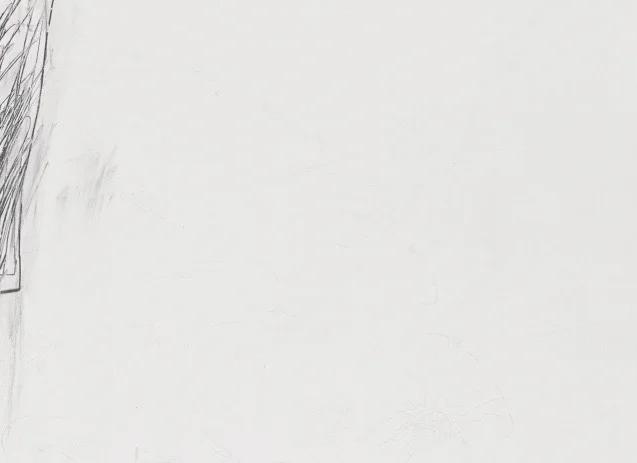 Auf den ersten Blick spürt man es eher, als dass man es bewusst sieht: Die grosse weisse Fläche ist etwas unruhig. Da und dort zeigt sie einige Verwischungen, und sie ist auch nicht ganz weiss. Bei genauer Betrachtung entdeckt man übermalte Bleistiftlinien, ja ein ganzes überdecktes Bild, das man allerdings nur schwach erkennt.