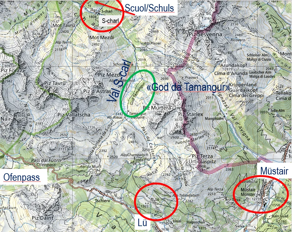 Das Unterengadiner Val S-charl, eine der südöstlichsten Ecken unseres Landes, birgt etwas Geheimnisvolles. Der einsame Landstrich liegt am Weg von Scuol über Lü ins Münstertal, ins Val Müstair. Diesen Weg bin ich wenn immer möglich bei meinen Aufenthalten im Bündnerland gegangen. Hier beginnt eine andere Welt: Tamangur.