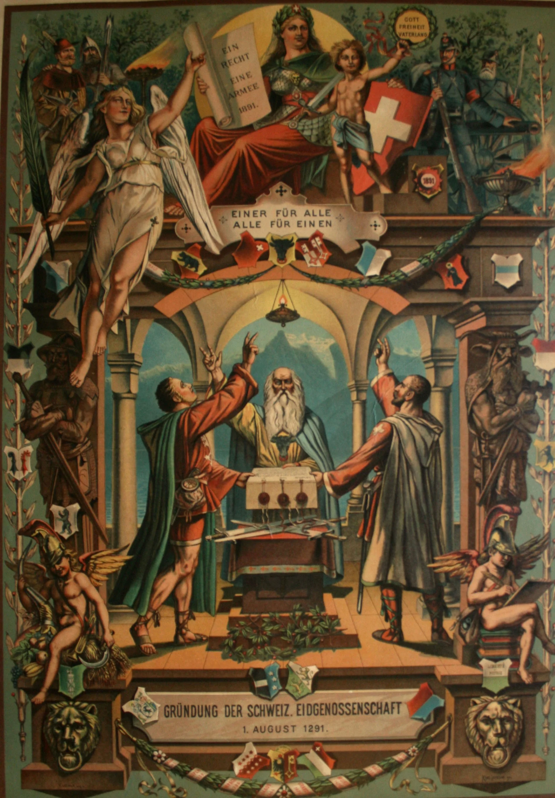 1891 wurde in der Schweiz erstmals ein Nationalfeiertag, der 1. August, gefeiert. Jauslin wurde beauftragt, das erste 1. August-Plakat zu entwerfen.