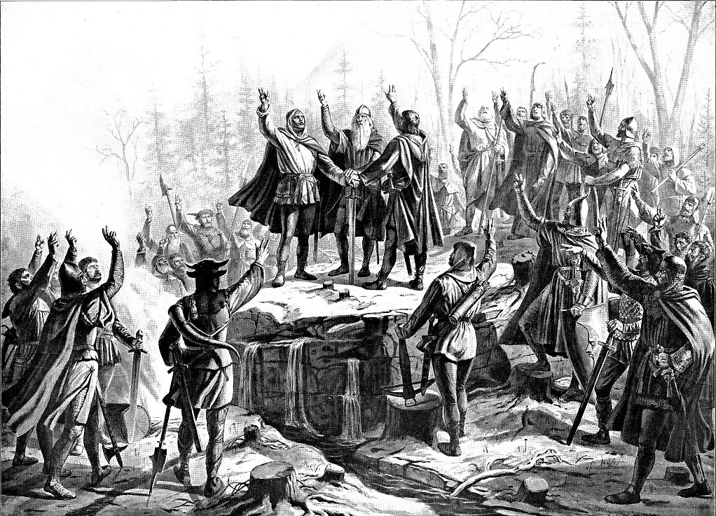 Karl Jauslin, am 21. Mai 1842 in Muttenz (BL) geboren, prägte das Geschichtsbild vieler Generationen – zumindest bildlich. Von Genf bis St. Margrethen hingen seine Darstellungen in den Schulstuben. Da die Bilder sowohl mit deutschen als auch französischen Legenden versehen waren, wurde er auch in der Westschweiz berühmt. Die Werke haben dazu beigetragen, die Schweizer Geschichte zu verklären, zu mythologisieren.
