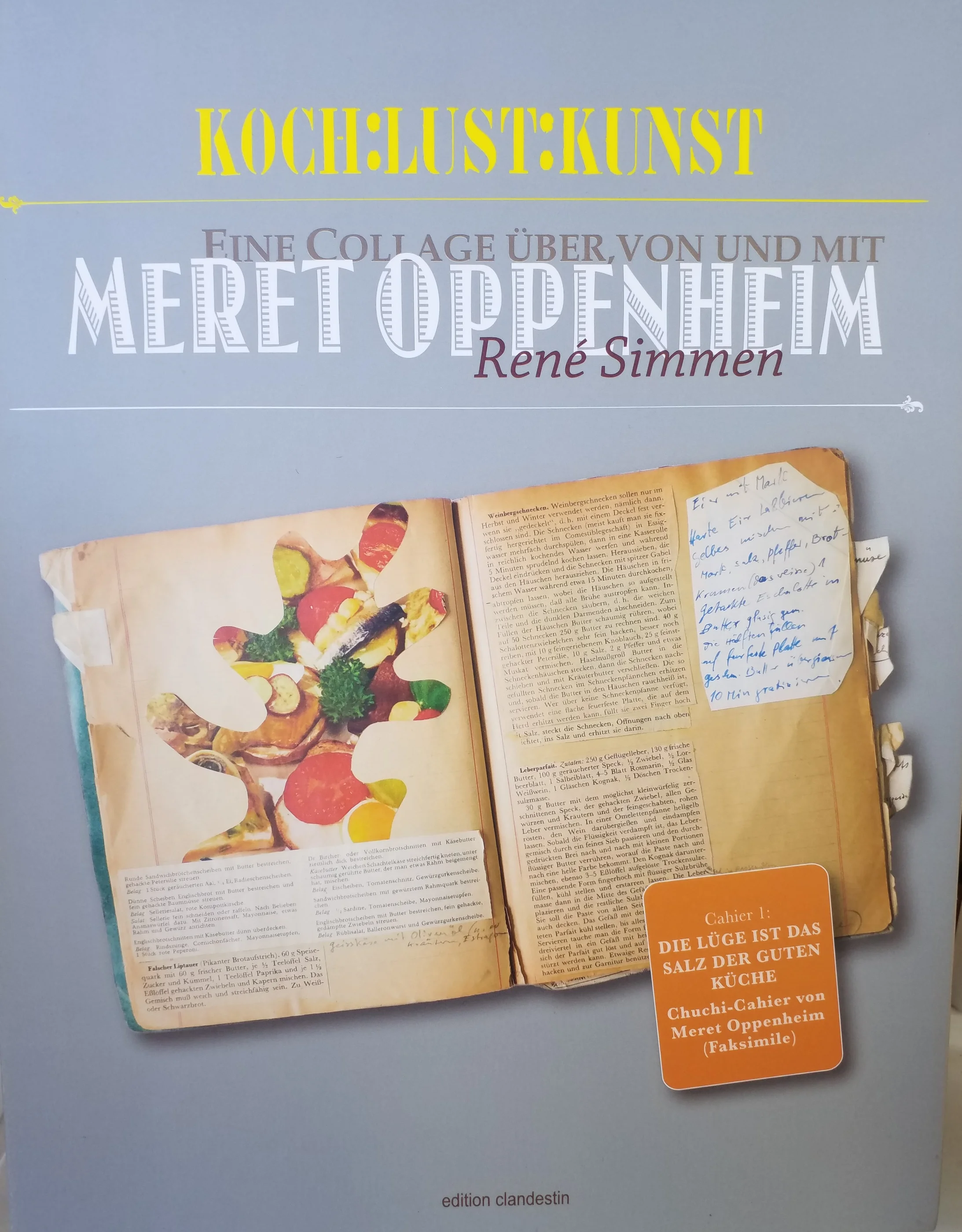Diese Meret Oppenheim, die er von früher kannte. Von ganz früher. Von Bern. Sie hatte es ihm angetan. Sie war auch eine, die gegen den Strom schwamm, und sich durchsetzte mit ihrer Kunst. Dada lag in der Luft, aber auch verführerische Düfte aus der Küche. Meret Oppenheim sammelte Rezepte, schnitt sie aus Zeitungen aus und klebte sie in ein Heft, beziehungsweise ein «cahier», das klingt besser. Manchmal kochte sie auch danach, aber wie brauchbar die Rezepte tatsächlich sind, das sei dahingestellt. In schönem Berndeutsch erzählte René über diese Begegnungen mit Meret in Bern. Die Idee, sowohl die schrägen Gedanken der Künstlerin, als auch ihre Rezepte in einem Gesamtwerk herauszubringen, setzte sich fest in René Simmens Kopf, in seinem Herzen und seiner Seele.