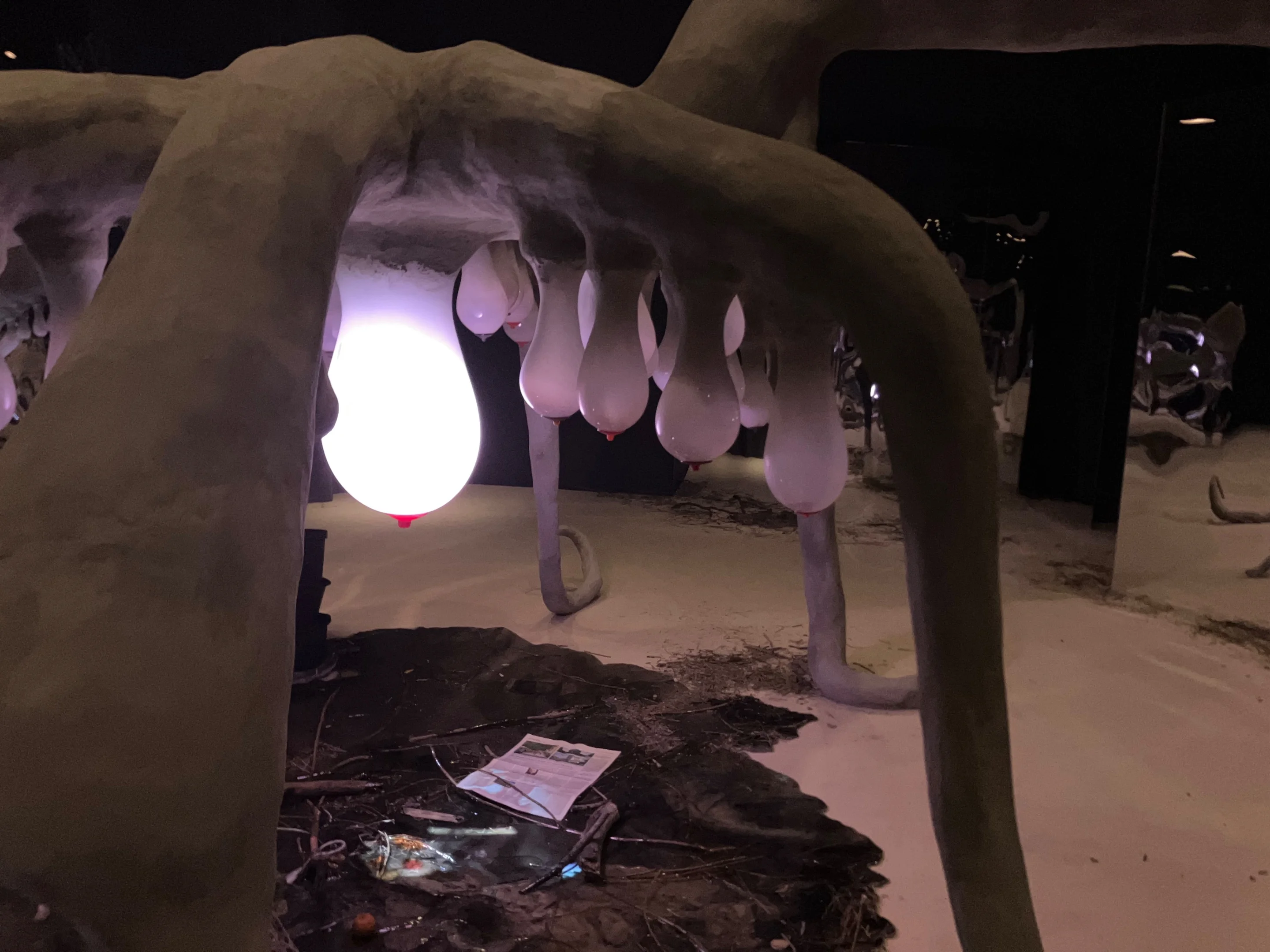 Sinnliche Spektakel liefern der in Berlin aktive Schweizer Julian Charrière und die in London lebende Französin Laure Prouvost. Charrière, technisch versiert und perfekt wie sein einstiger Lehrer Olafur Eliasson, thematisiert in der Filmarbeit «Controlled Burn» Feuer, Verbrennung und Architekturen moderner Energiegewinnung und lässt in fulminanten Bildern jene – zerstörerische? – Energie explosiv aufflammen, von der unsere Zivilisation lebt. Laure Prouvost, die 2013 den Turner Prize zugesprochen erhielt, lässt uns ihre geheimnisvoll dunkle Installation «Mootherr» betreten, in der fahle Lichter in Form von Brüsten aufleuchten. Als Besucher glaubt man sich in diesem verspiegelten Ambiente in einer wohltuenden und gleichzeitig gespenstischen Urmutter wiederzufinden.
