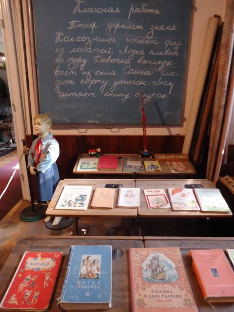 Natürlich ist das Museum ein Krimskrams-Museum. Da gibt es Dutzende von Lenin- und Karl Marx-Büsten, da gibt es einen nachgebauten Lebensmittelladen, alte Mopeds, alte Funkgeräte und Gasmasken, ein nachgebautes Klassenzimmer und ein Büro von Parteioberen. Und viel mehr.