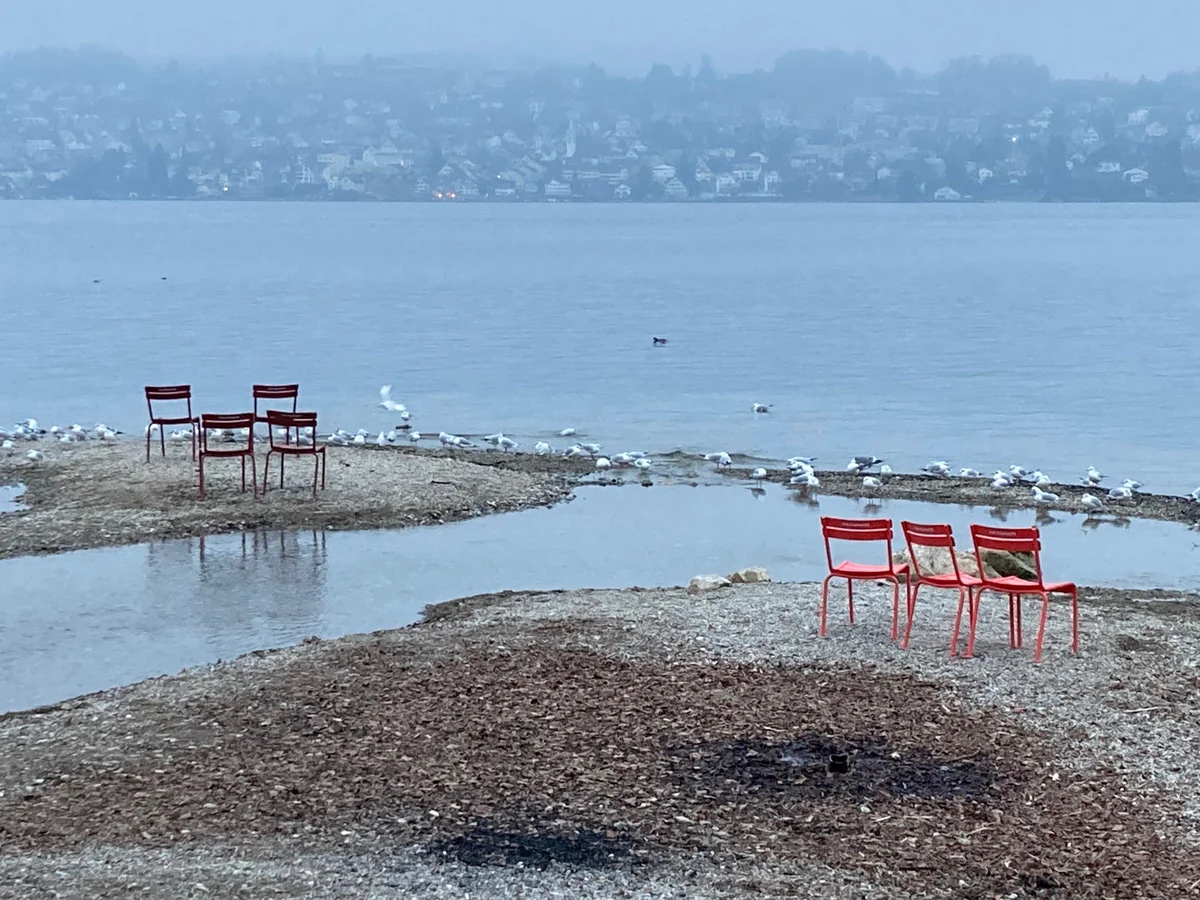 Der Anblick von Stühlen am Ufer des Zürichsees und die Lektüre eines Artikels über die Lehrerausbildung in der Schweiz lassen den Autor (alb-)träumen. Ein heftiger Sturm ist angesagt. Aus Vorsicht beschliesse ich, den Morgenspaziergang vom Küsnachter Wald an den See zu verlegen. Um diese Zeit gehört das Ufer den Vögeln.